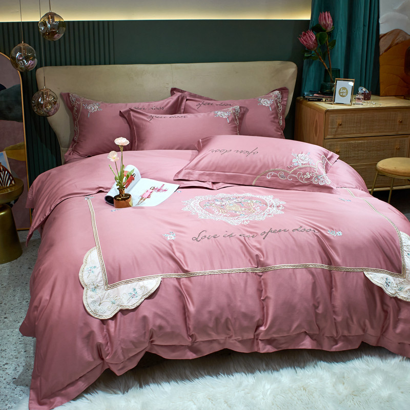 (总)星尚家纺 2024新款全消光230g牛奶绒刺绣保暖四件套-花漾,晨雾绿,豆沙粉,樱花粉