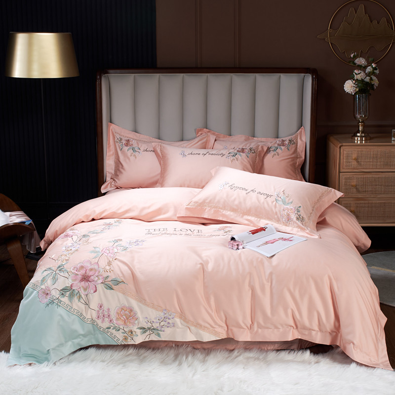 (总)星尚家纺 2024新款全消光230g牛奶绒刺绣保暖四件套-花漾,晨雾绿,豆沙粉,樱花粉