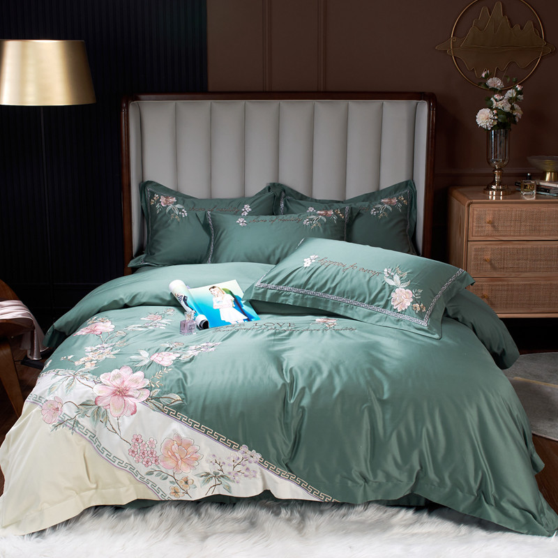(总)星尚家纺 2024新款保暖全消光A类230g牛奶绒绣花绒四件套-曼妙花园,豆沙粉,孔雀蓝,清新绿,绅士灰,香芋紫,樱花粉