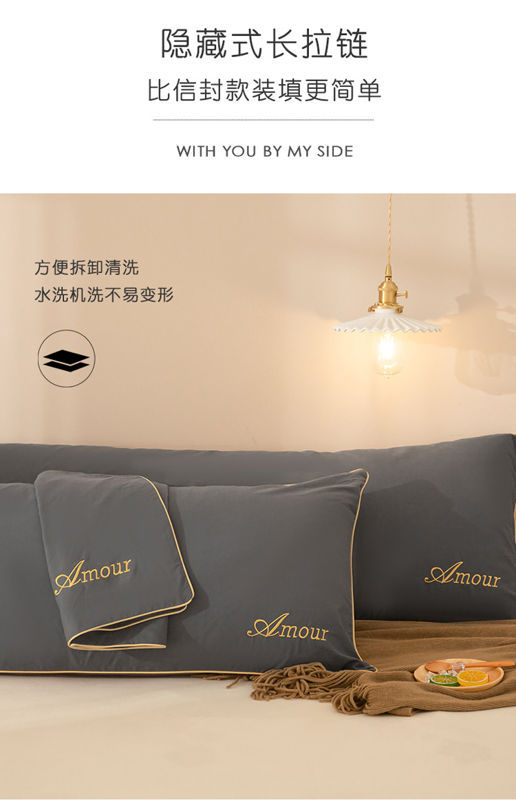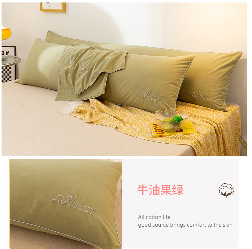 (总)姝辰 2023新款40S加厚色泽水洗棉简约刺绣长枕套( 最低销售控价不低于36)