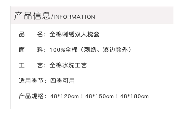 商品名称:(总)姝辰 2023新款40S加厚色泽水洗棉简约刺绣长枕套( 最低销售控价不低于36)