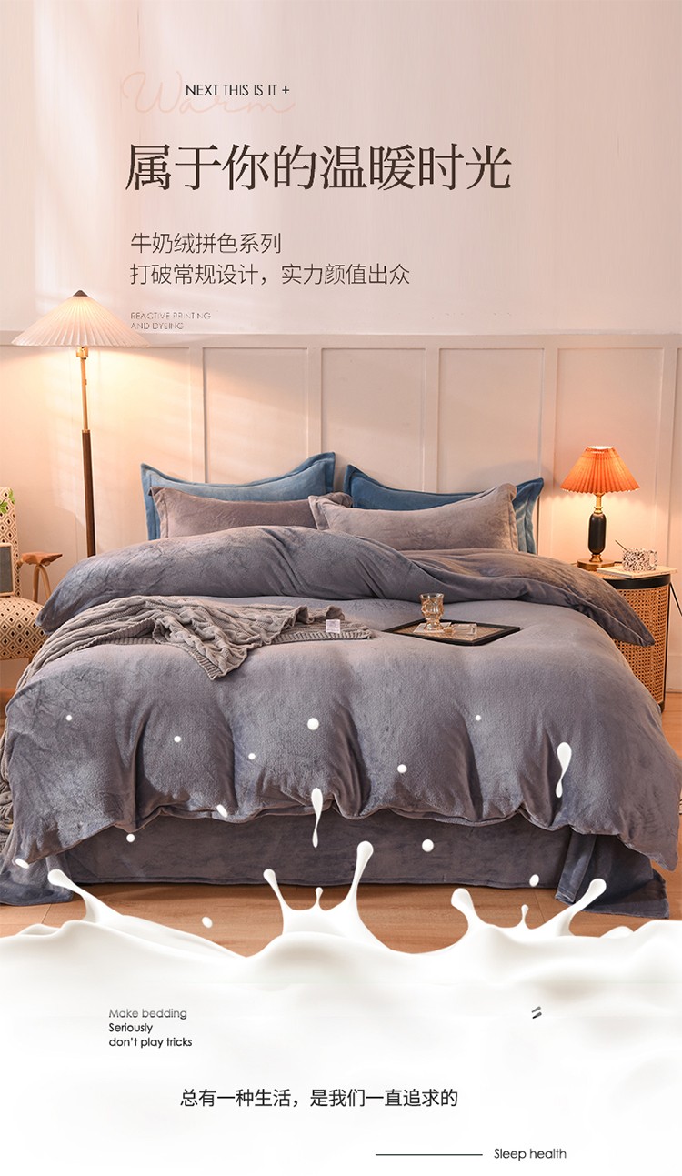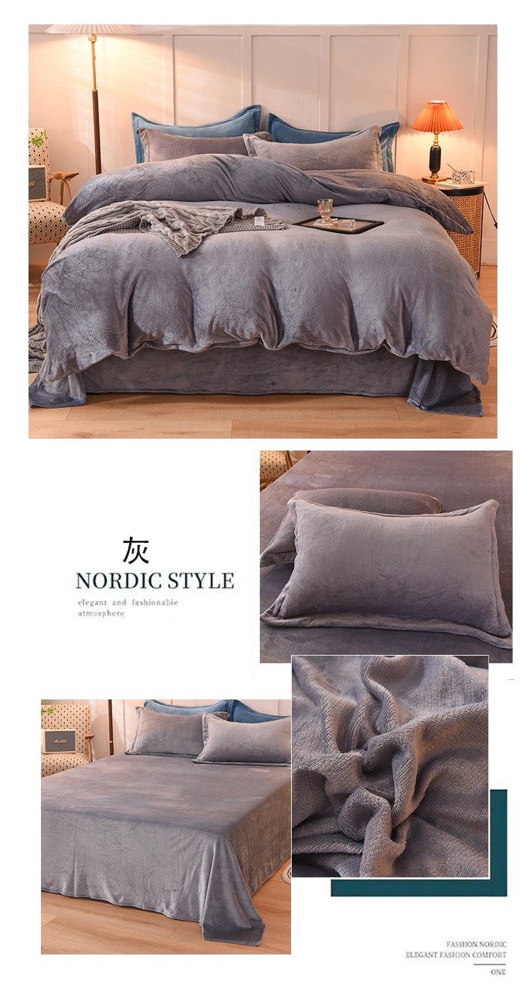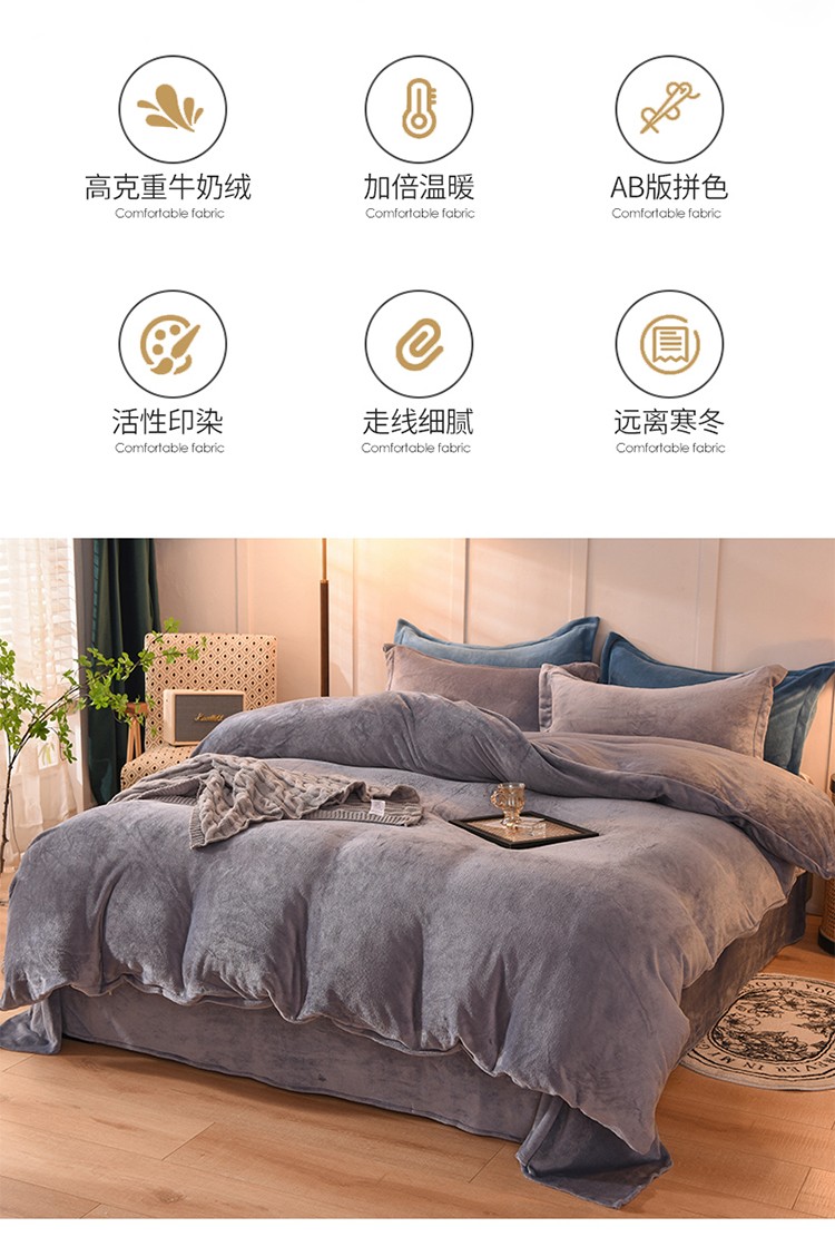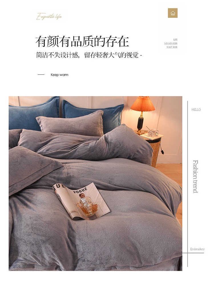 当前位置: 91家纺网 > 商品网购 > 床品套件 > 四件套 > 牛奶绒四件套 > 艾米家居 2021新款纯色拼色牛奶绒系列四件套 灰