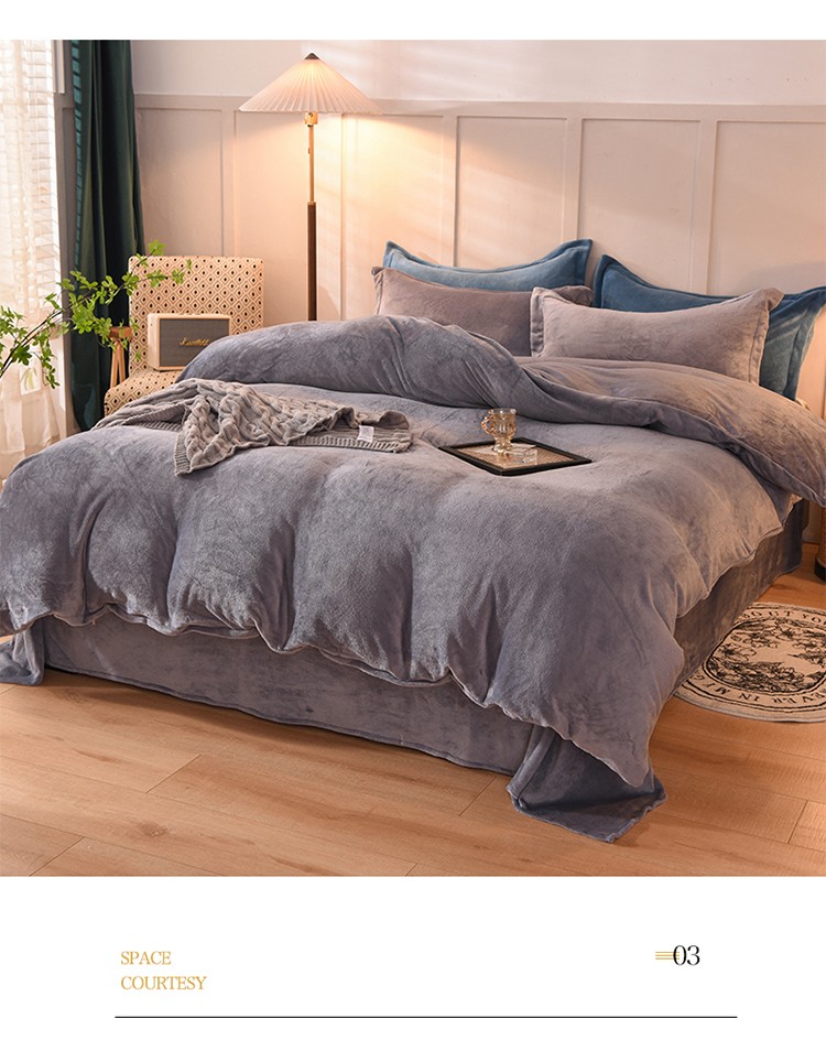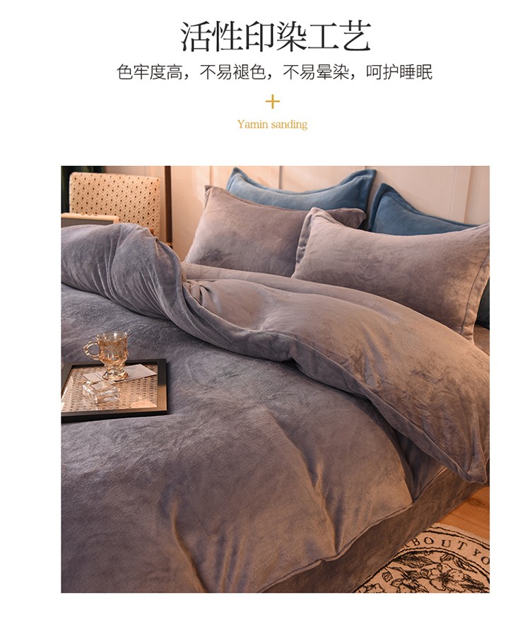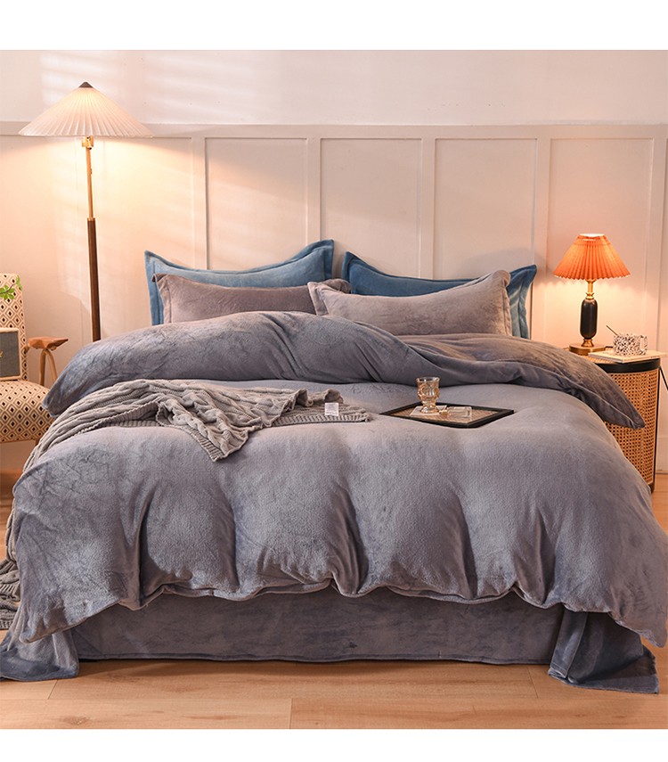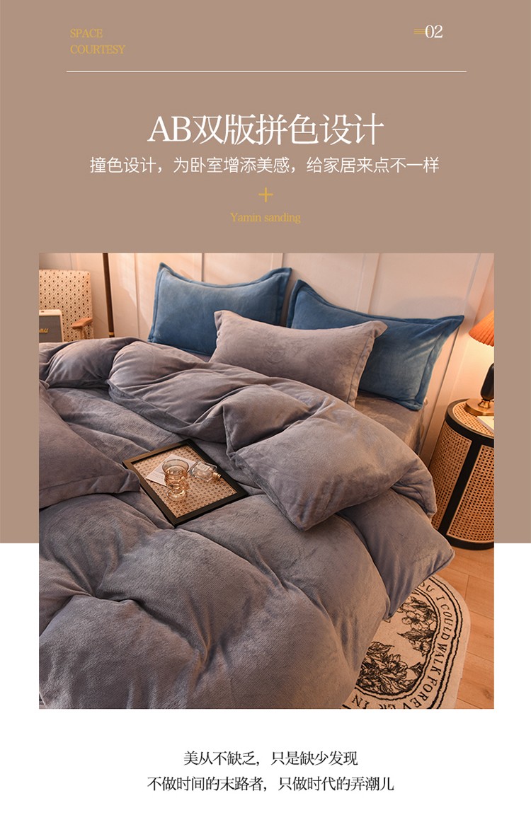 当前位置: 91家纺网 > 商品网购 > 床品套件 > 四件套 > 牛奶绒四件套 > 艾米家居 2021新款纯色拼色牛奶绒系列四件套 灰