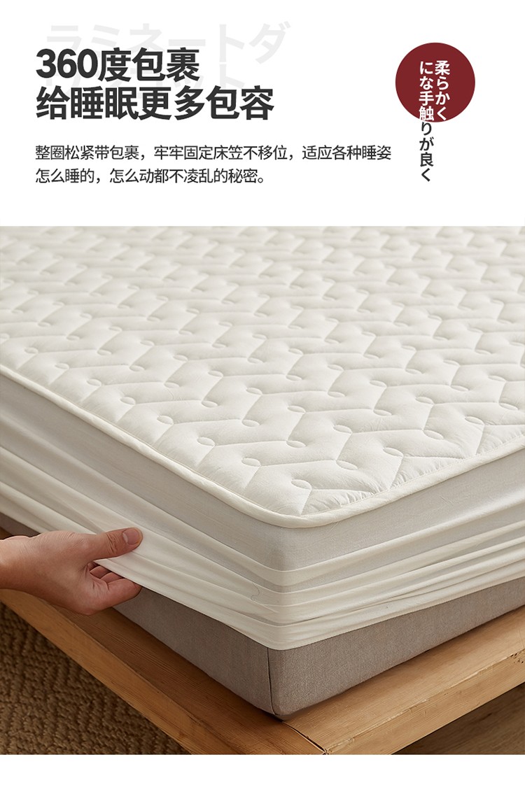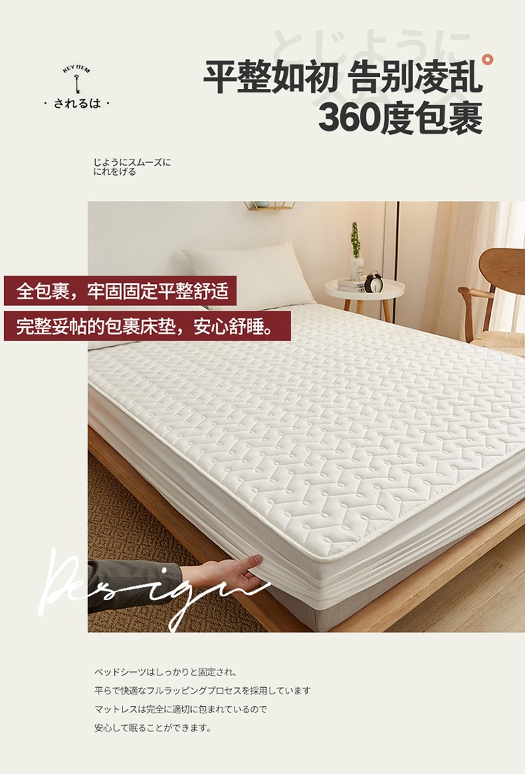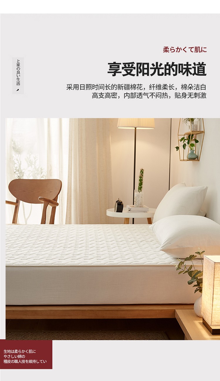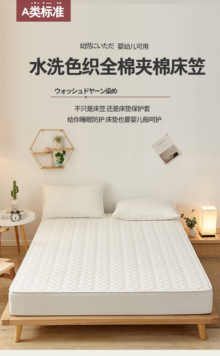 爱喔 2021新款日式良品A类全棉色织水洗棉夹棉床笠 月光白