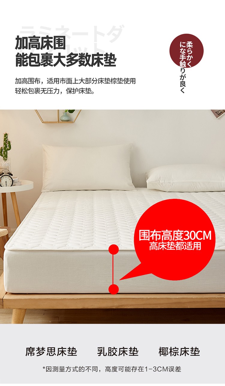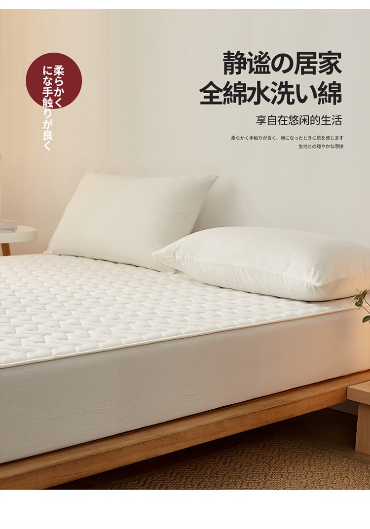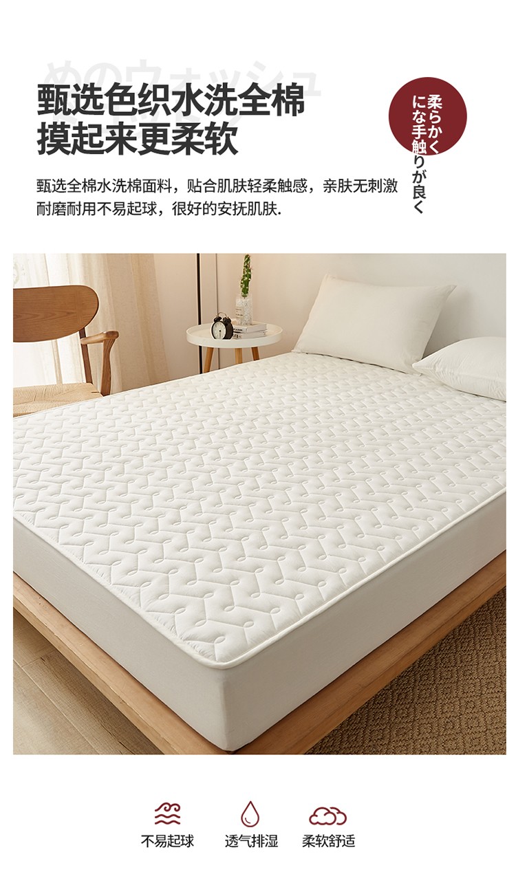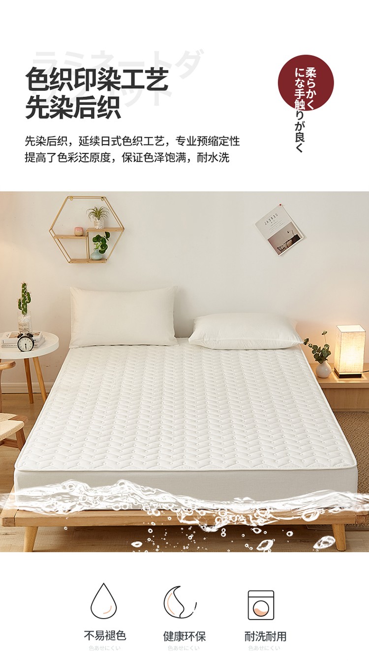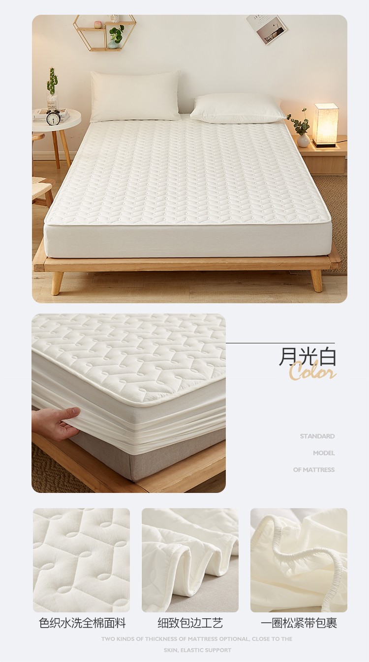 商品名称:爱喔 2021新款日式良品A类全棉色织水洗棉夹棉床笠 月光白