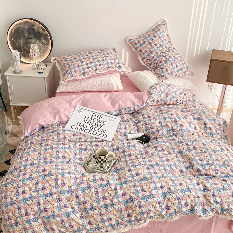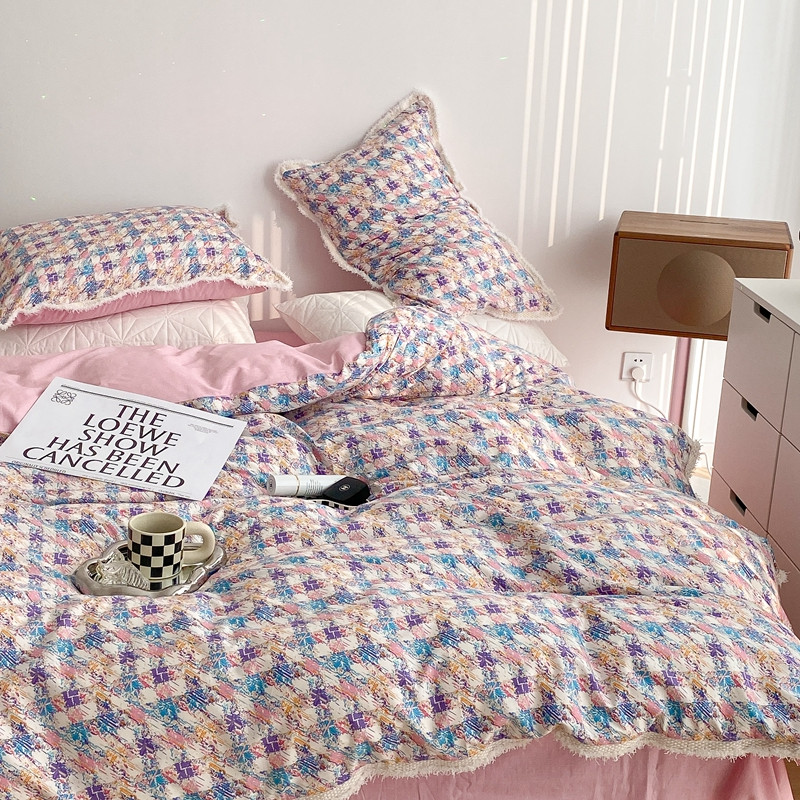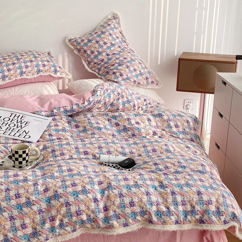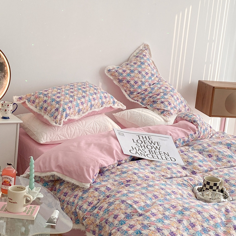 昔可家纺 2022新款13372全棉香香风流苏边四件套 香香紫流苏