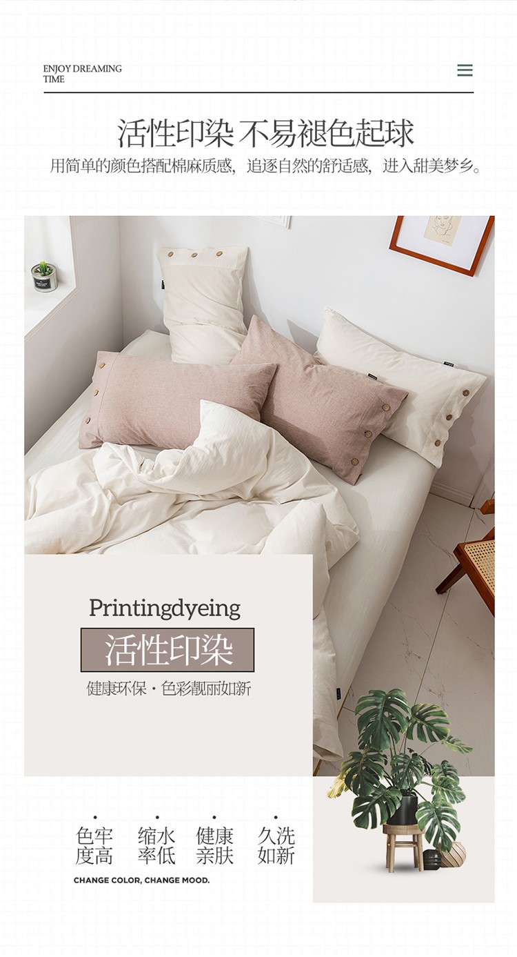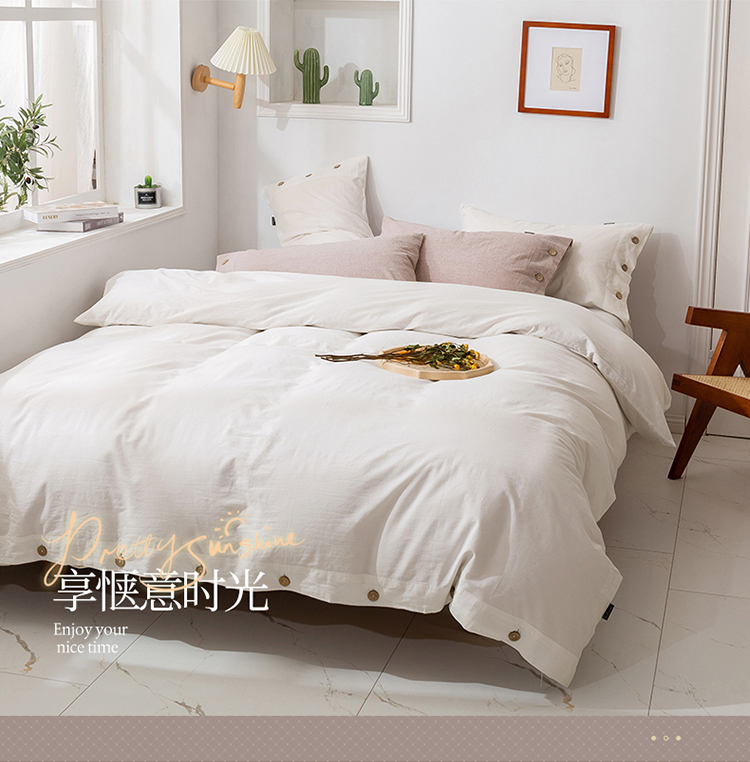 简家居 2022新款15%亚麻85%棉四件套 象牙白