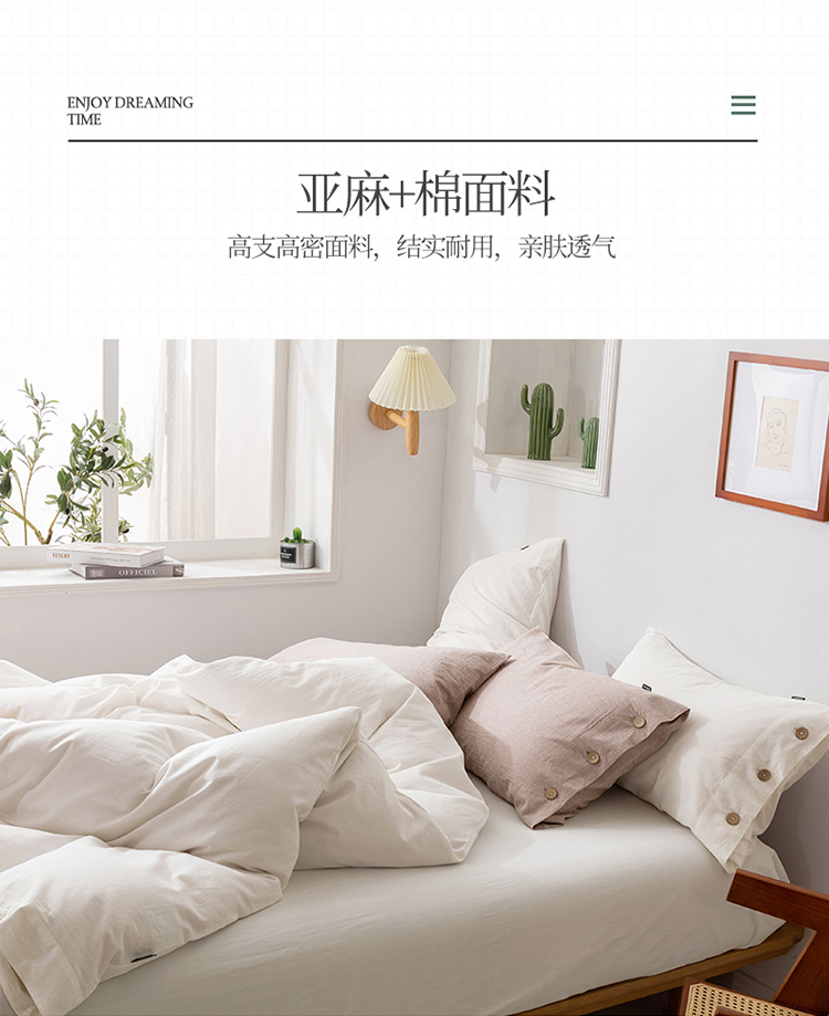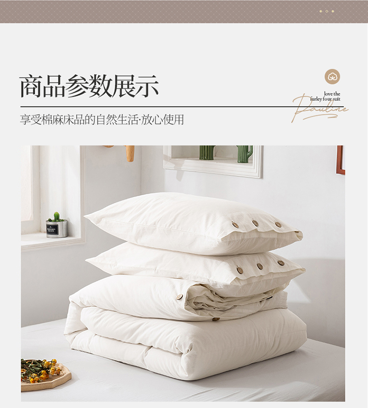 商品名称:简家居 2022新款15%亚麻85%棉四件套 象牙白