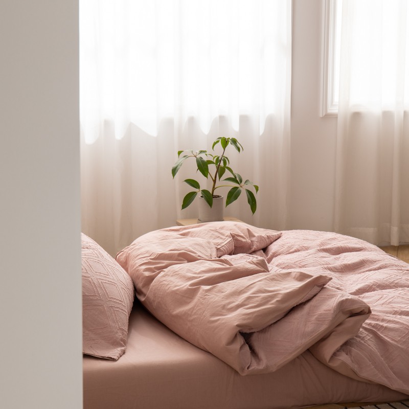 (总)简家居 2025新款亲肤舒适棉麻床盖三件套,棉麻提花