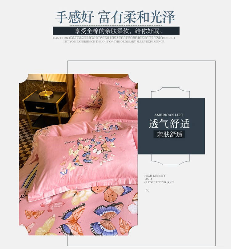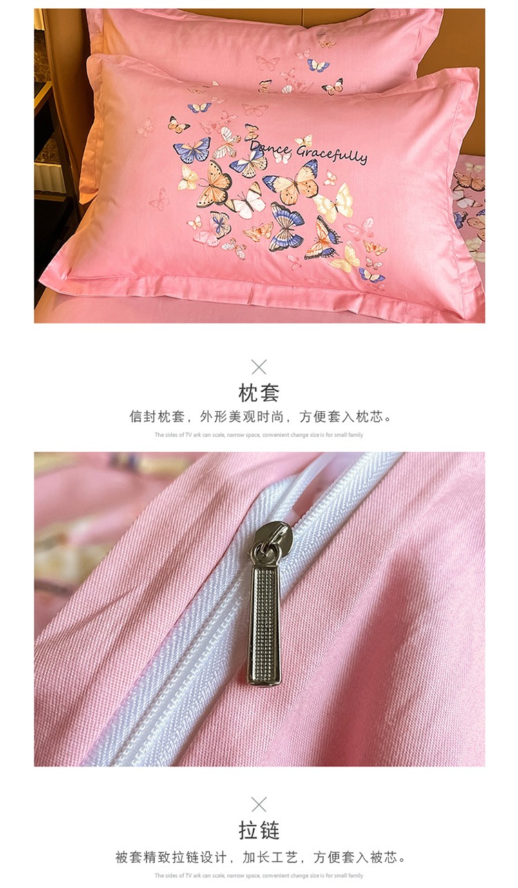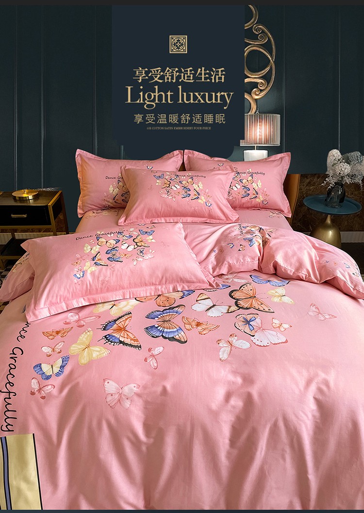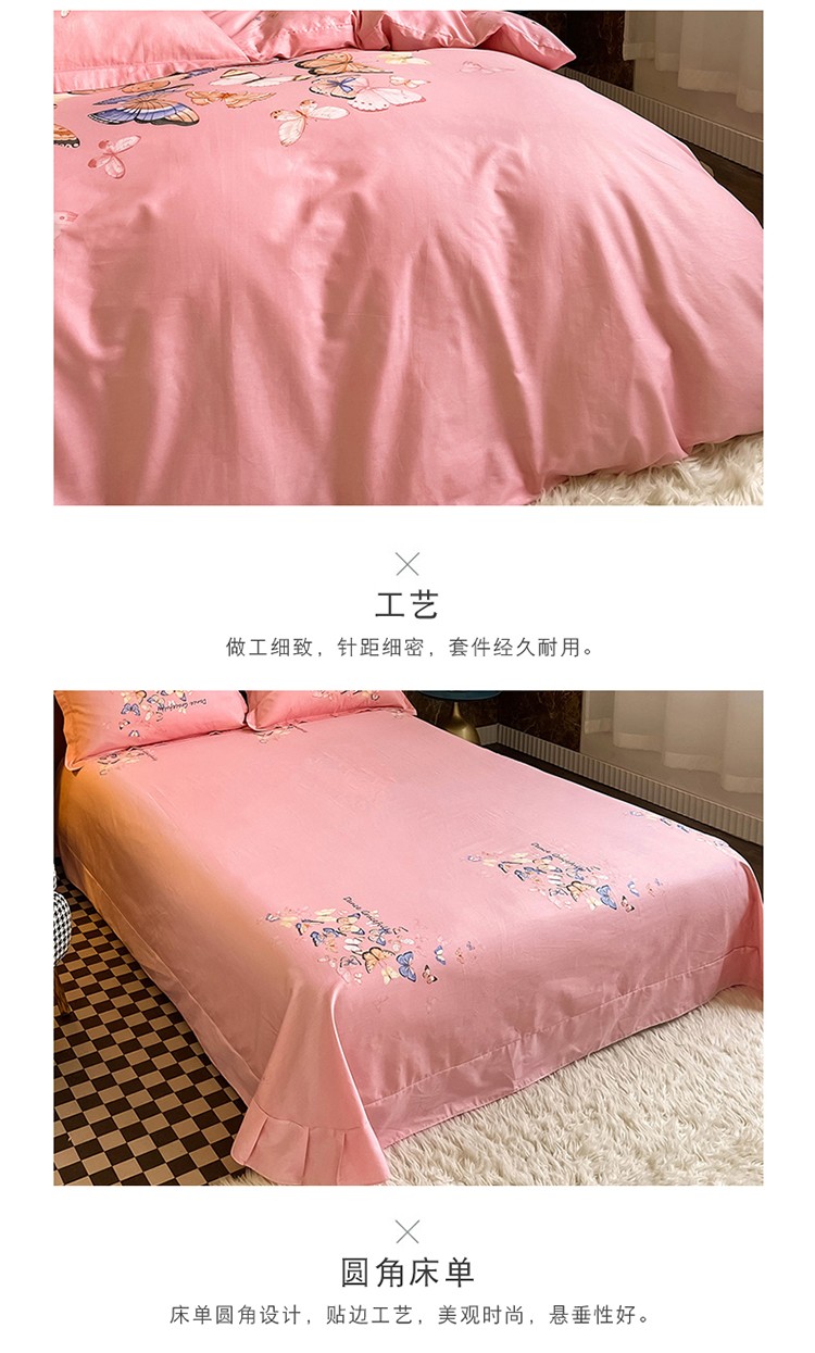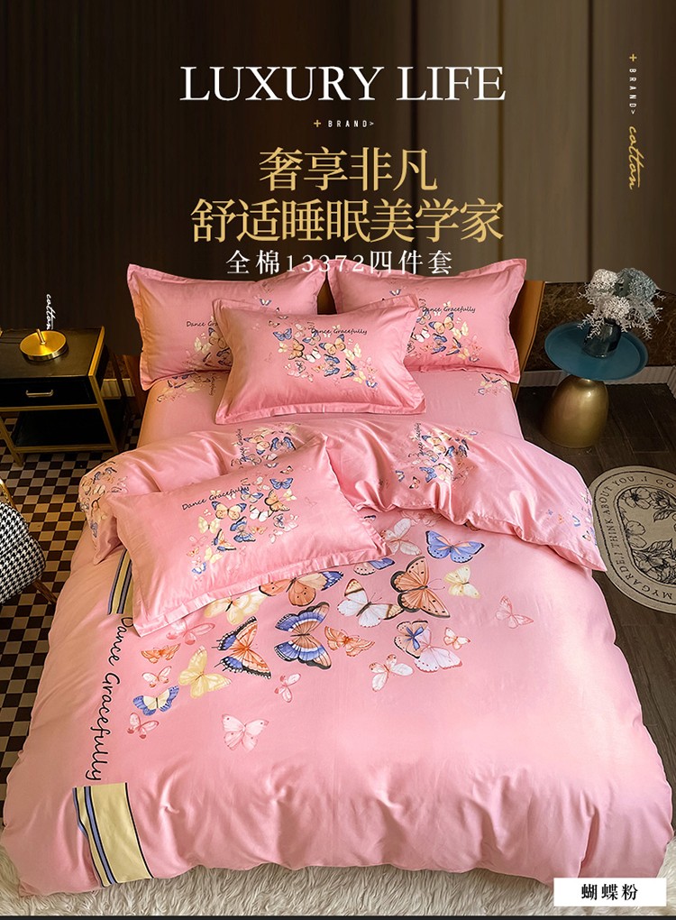 金爱家 2023新款大版13372全棉花卉系列四件套 蝴蝶粉