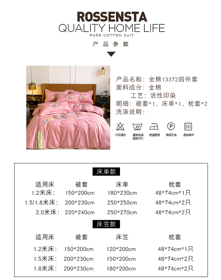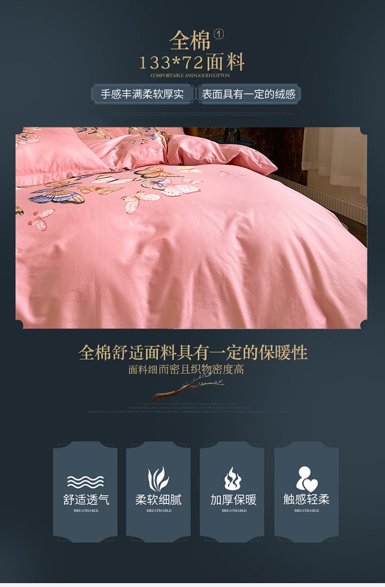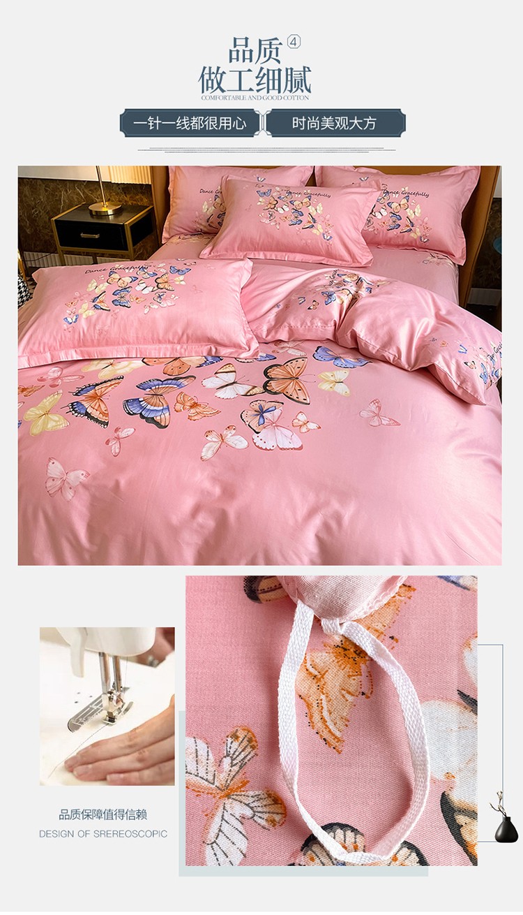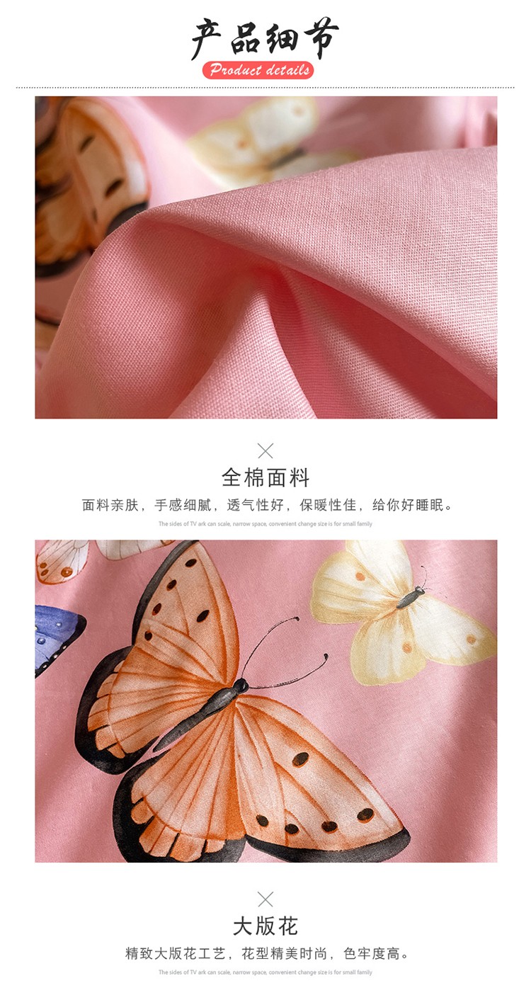 商品名称:金爱家 2023新款大版13372全棉花卉系列四件套 蝴蝶粉