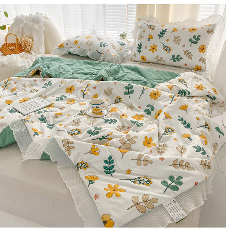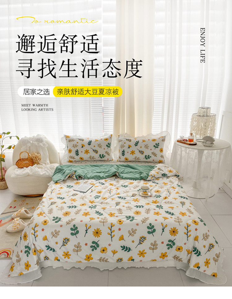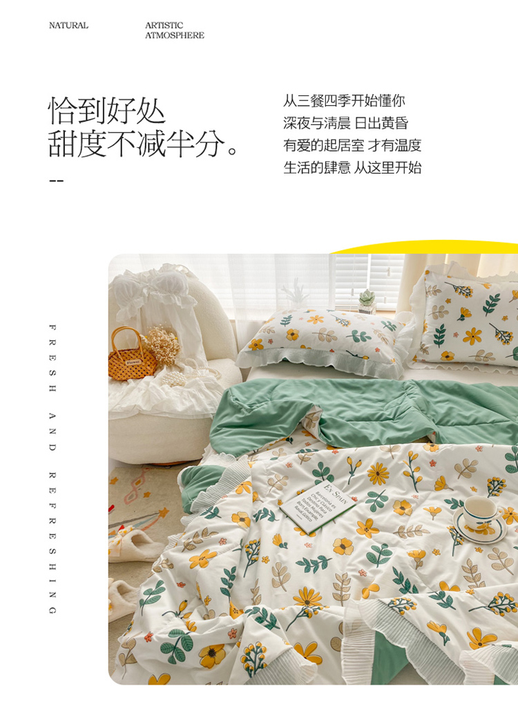 (总)林希 2023春夏新款韩版夏被春秋被四季被花边夏被,花颜粉,享受时光,叶觅粉,橘彩粉,叶舒影兰,橘彩桔