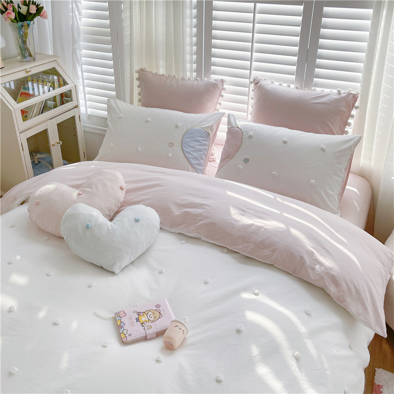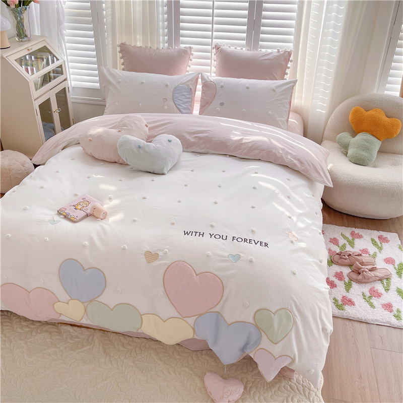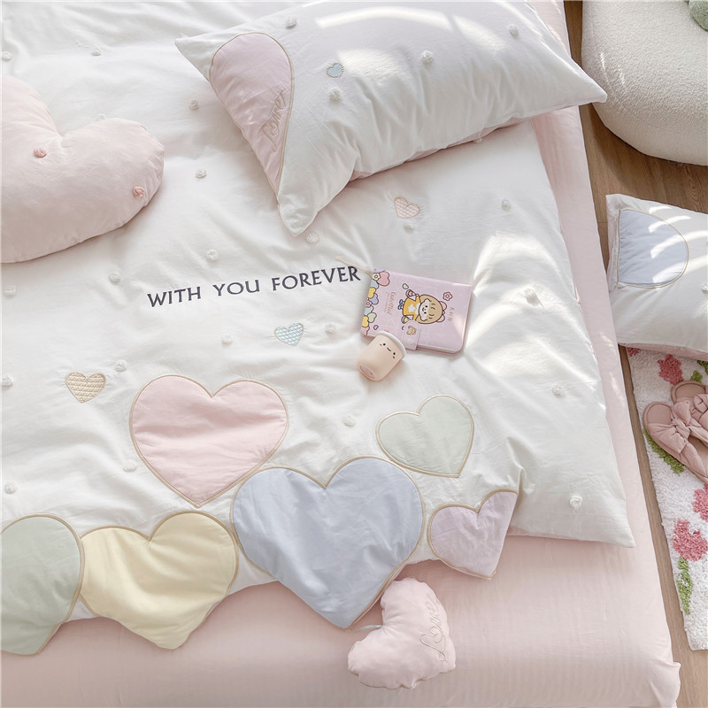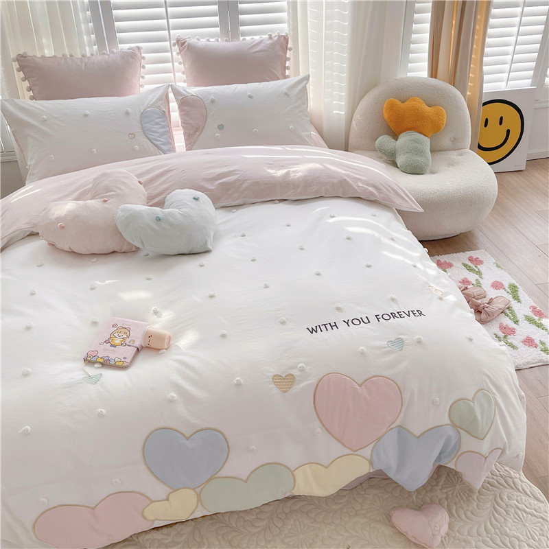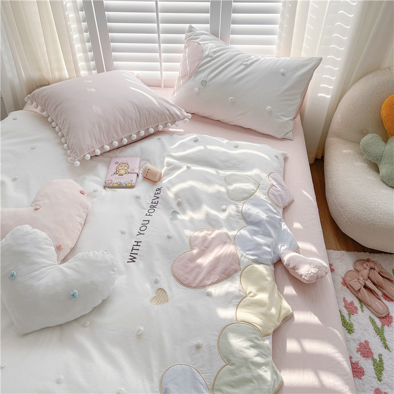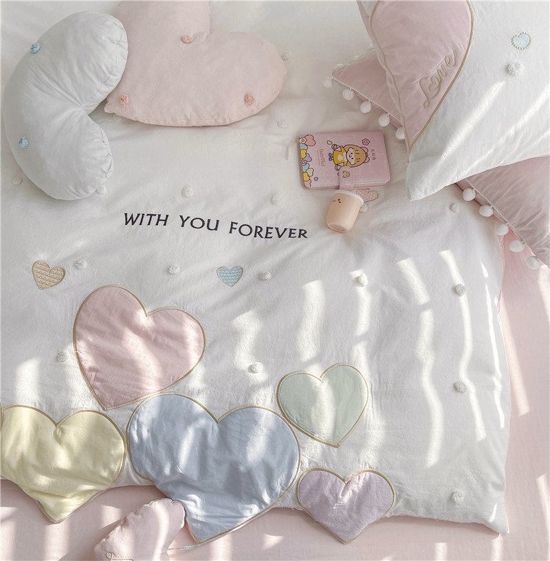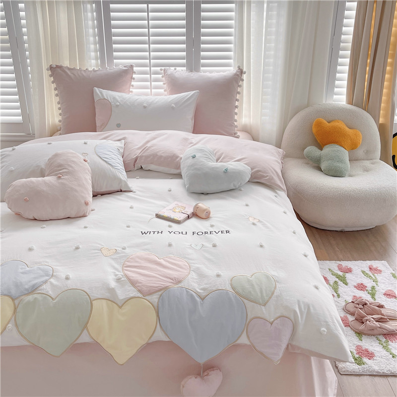星野 2022新款优质40s水洗棉四件套-马卡龙心语-清甜粉