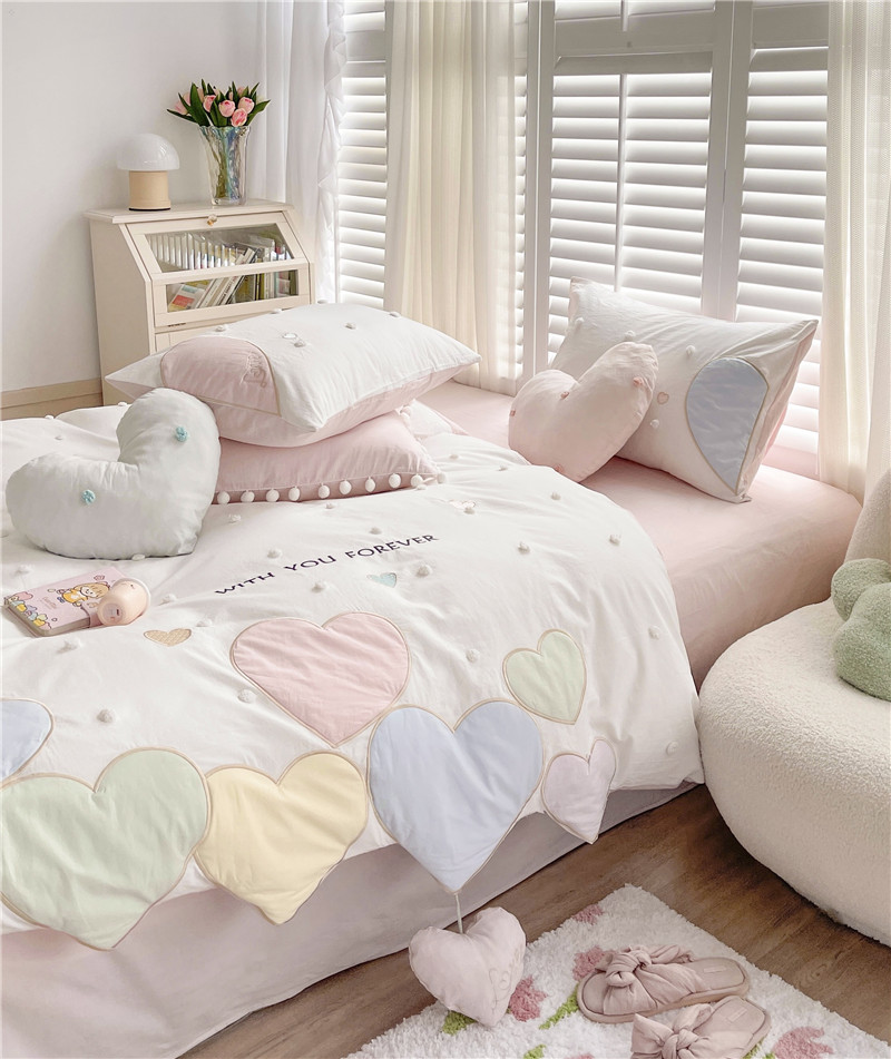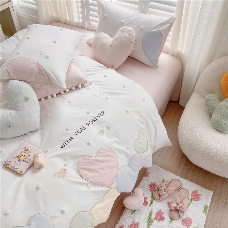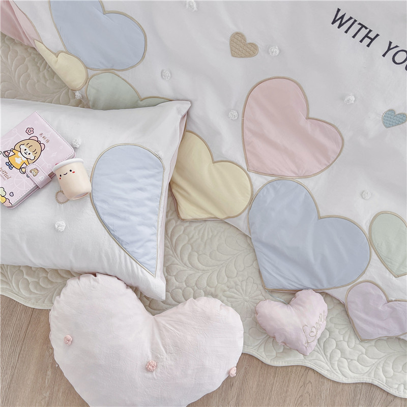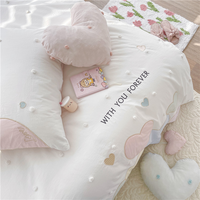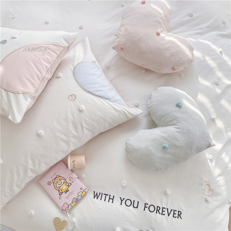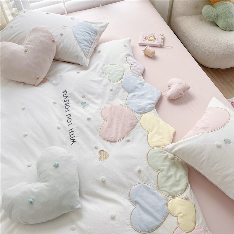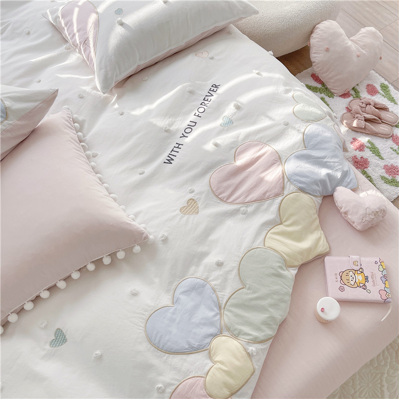 星野 2022新款优质40s水洗棉四件套-马卡龙心语-清甜粉