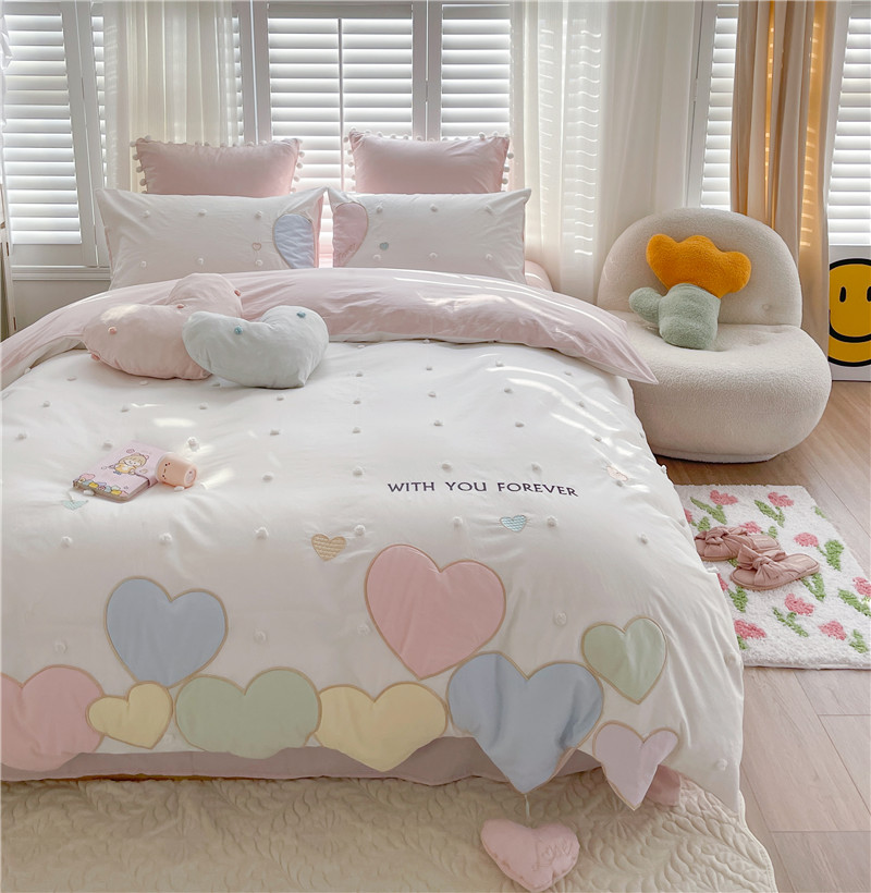 (总)星野 2023新款40s水洗棉贴布绣四件套-多巴胺女孩,多巴胺女孩