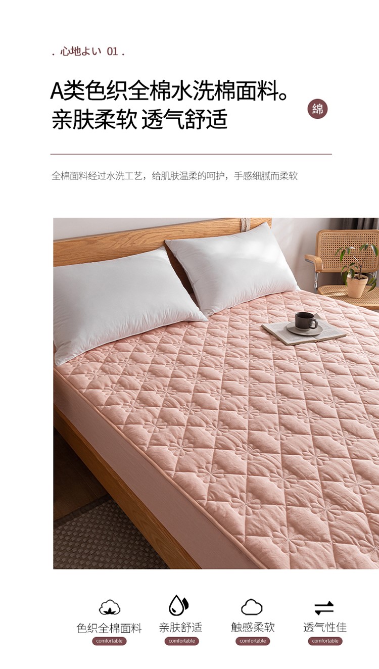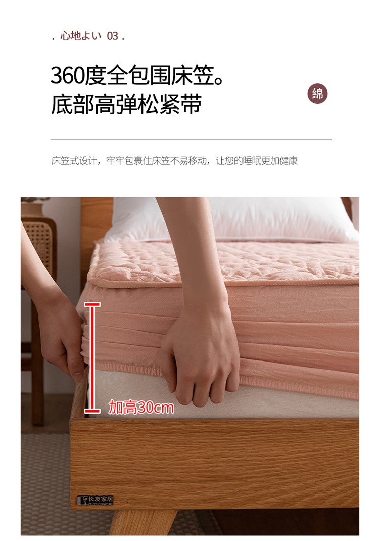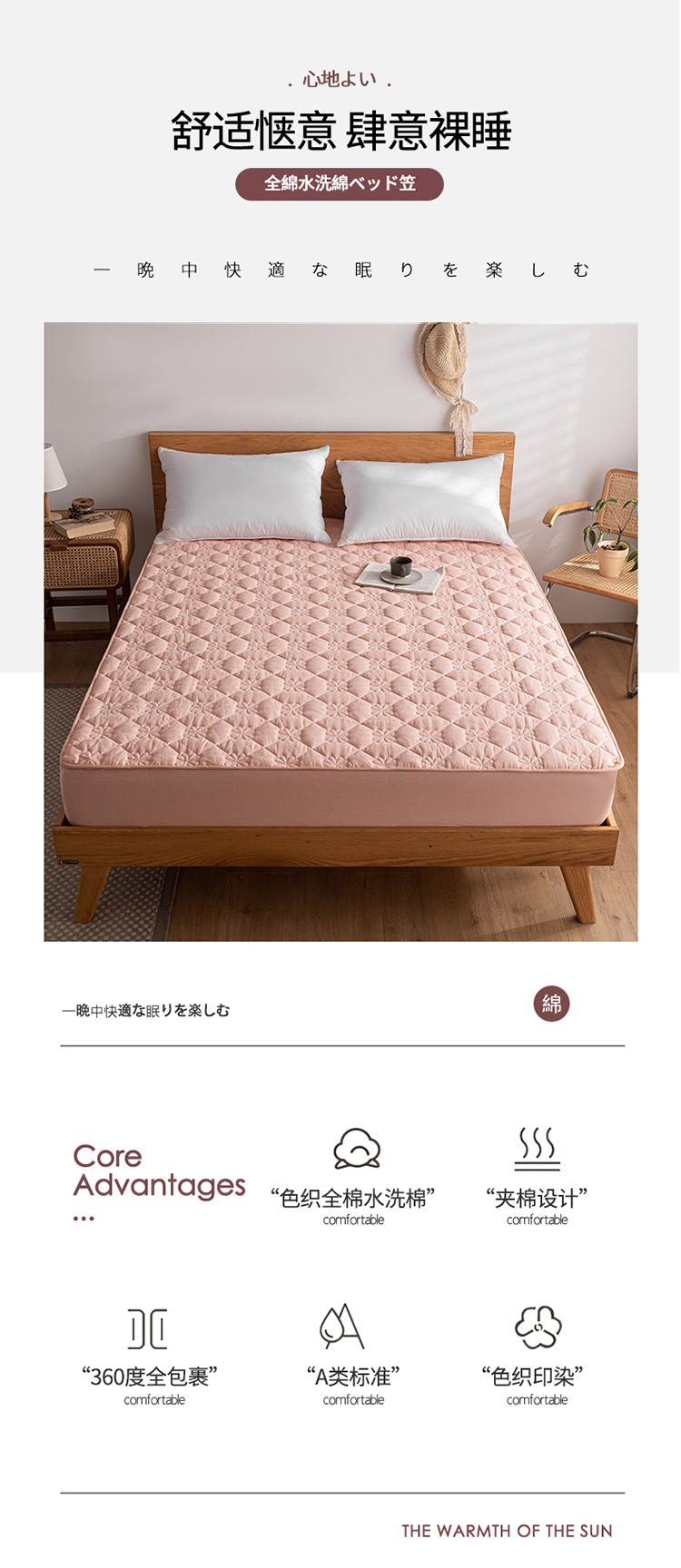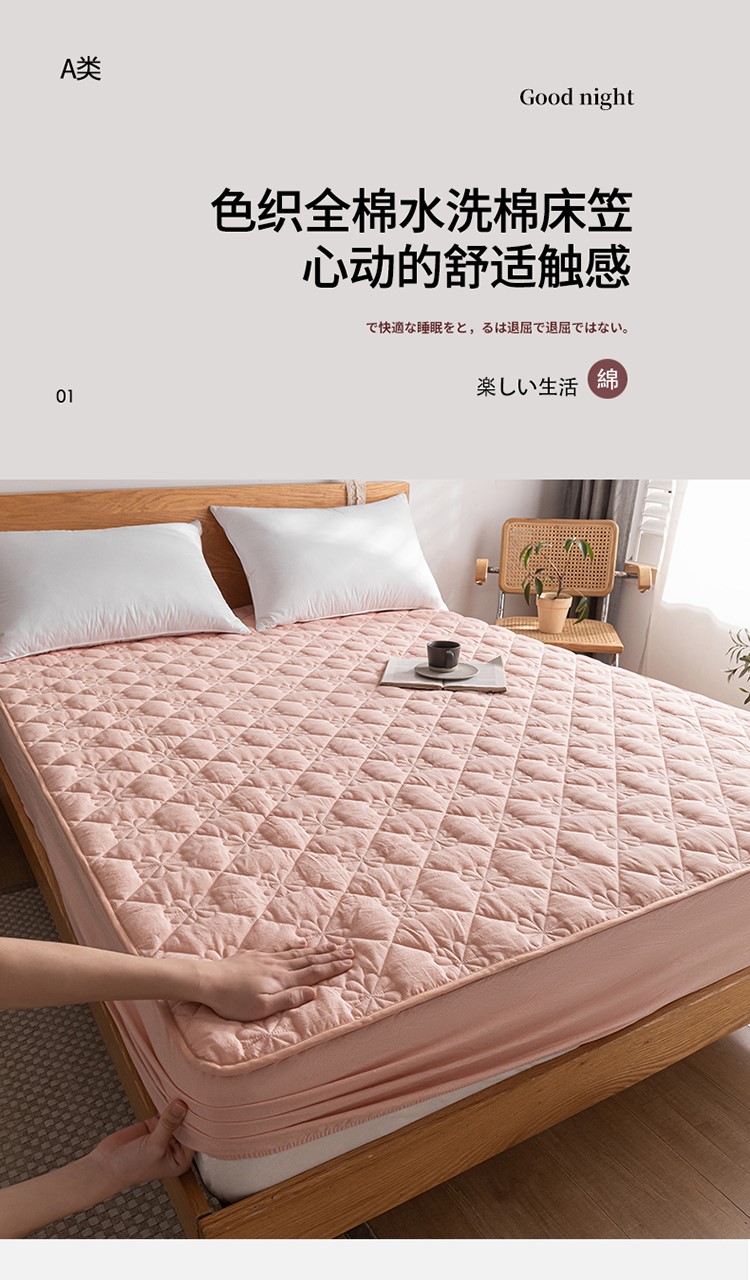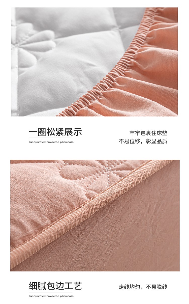 商品名称:东宇 2022新款色织全棉水洗棉夹棉床笠 粉