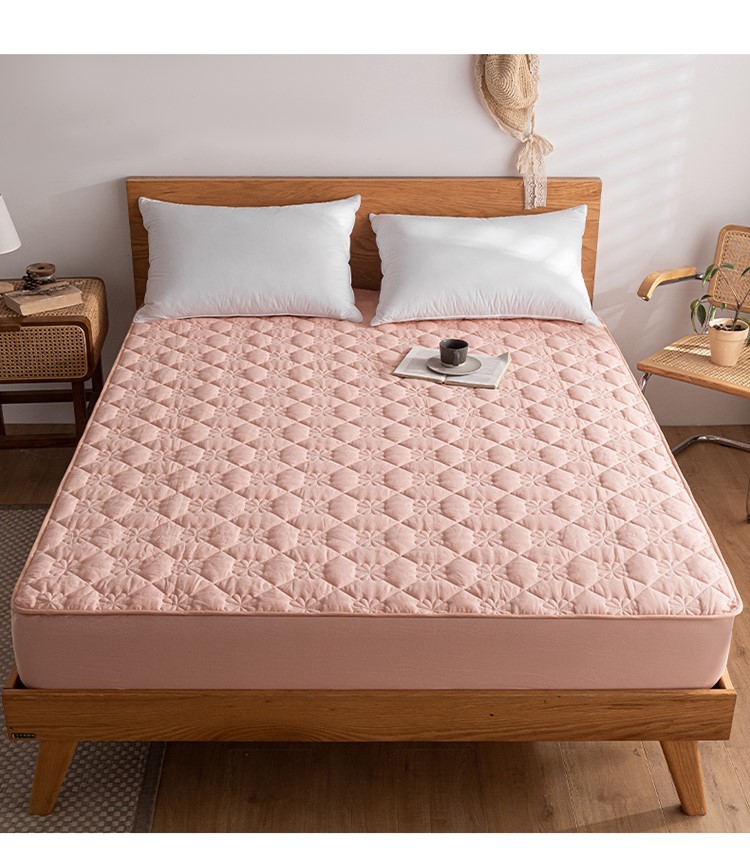 东宇 2022新款色织全棉水洗棉夹棉床笠 粉