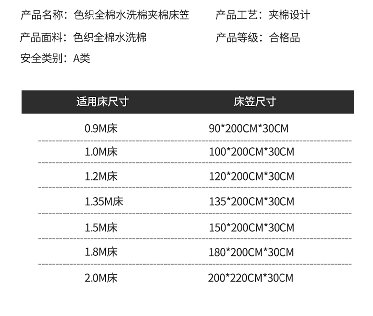 商品名称:东宇 2022新款色织全棉水洗棉夹棉床笠 白