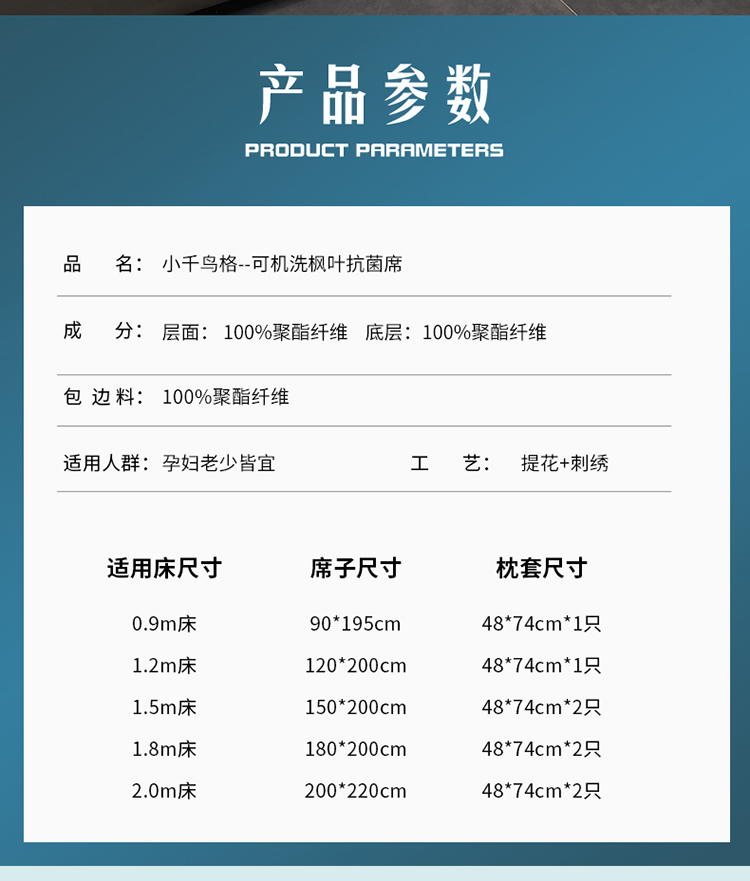 商品名称:小牛席业 2022新款小千鸟格枫叶款抗菌席(鲜亮风格) 咖色
