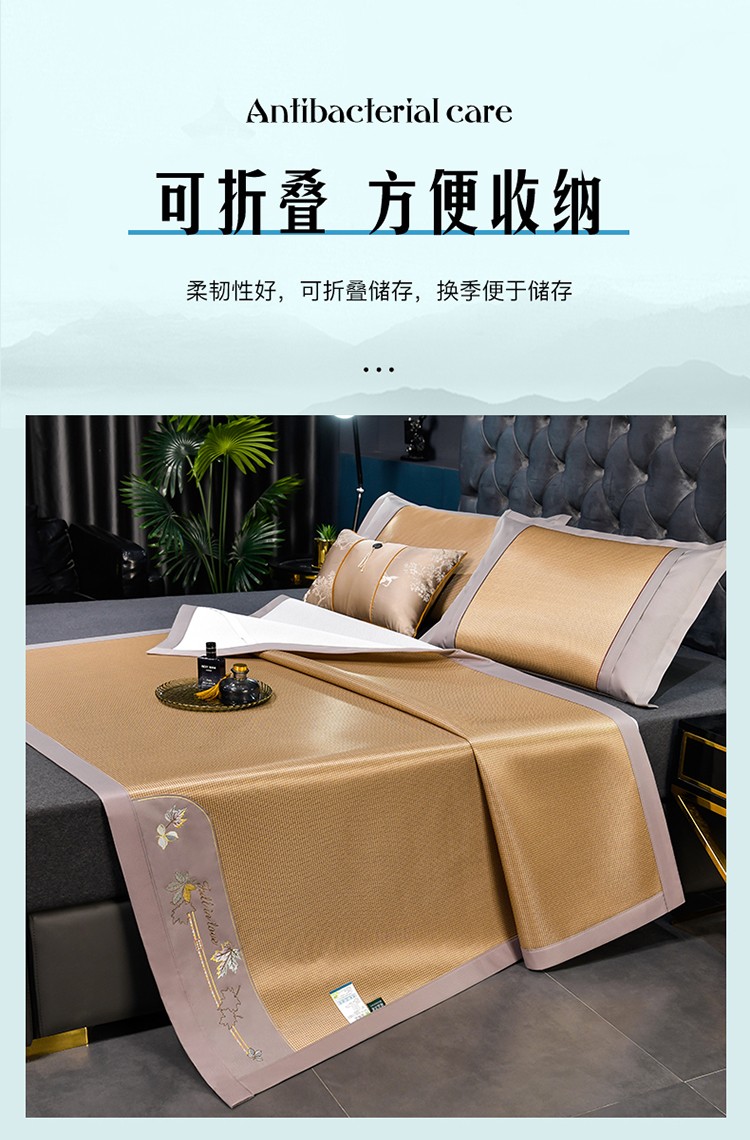 (总)小牛席业2023新款小苍兰清香冰藤席系列凉席竹席冰丝席乳胶席,黑咖,金色,绿色,浅蓝,香槟,银灰