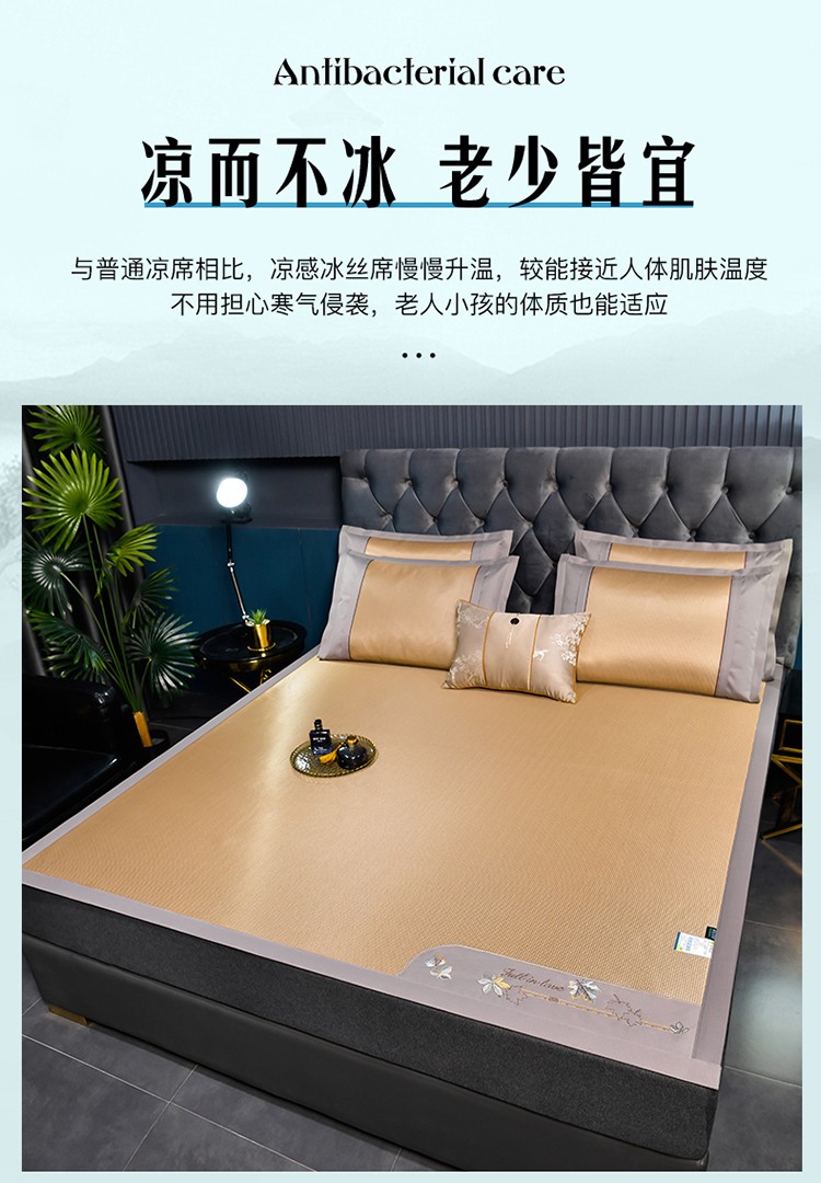 2023新款夏日冰点-冰藤双面席凉席藤席竹席冰丝席乳胶席,咖色,蓝色,绿色,香槟