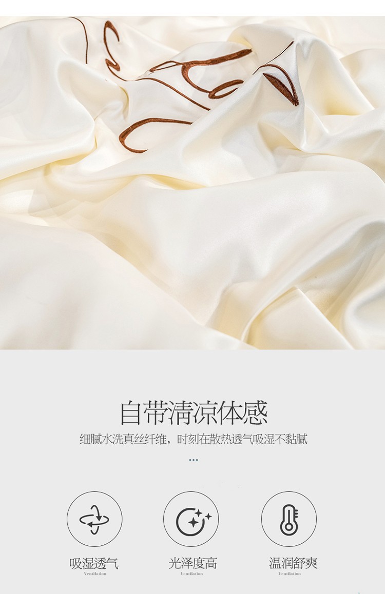 (总)骏腾 2022简爱水洗天丝绣花四件套水洗真丝三件套,宝蓝,湖蓝,酒红,墨绿,深灰,银灰,玉色