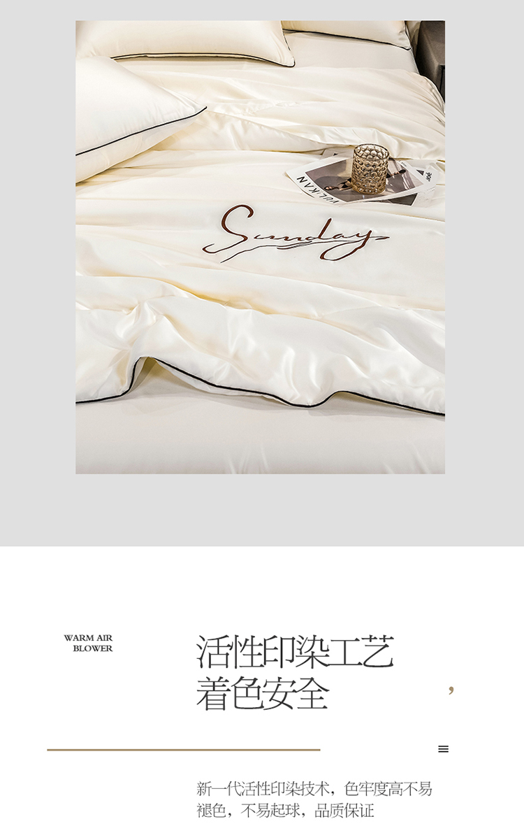 (总)骏腾 2023水洗冰丝刺绣四件套水洗真丝三件套天丝床笠,本白,豆沙,粉色,格林蓝,柠檬黄,水墨灰,雾霾蓝,西柚橙