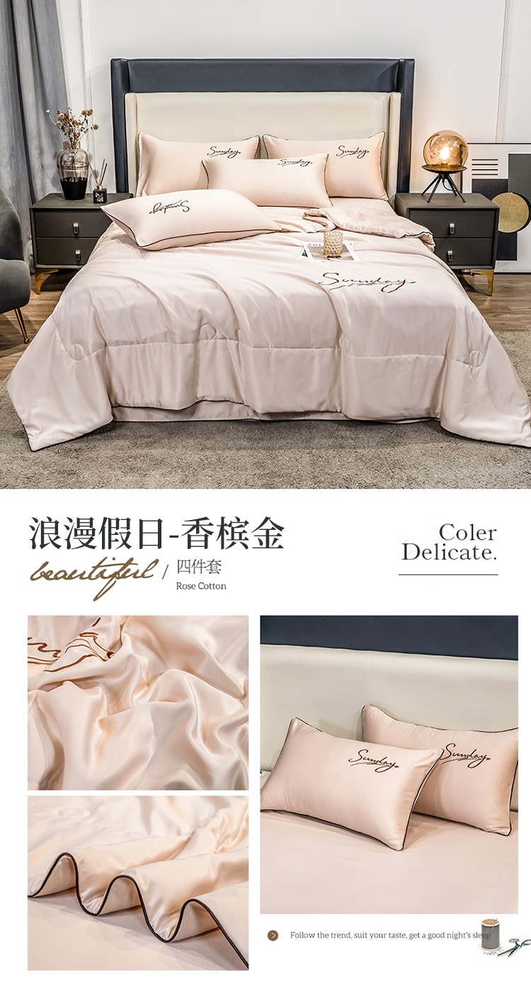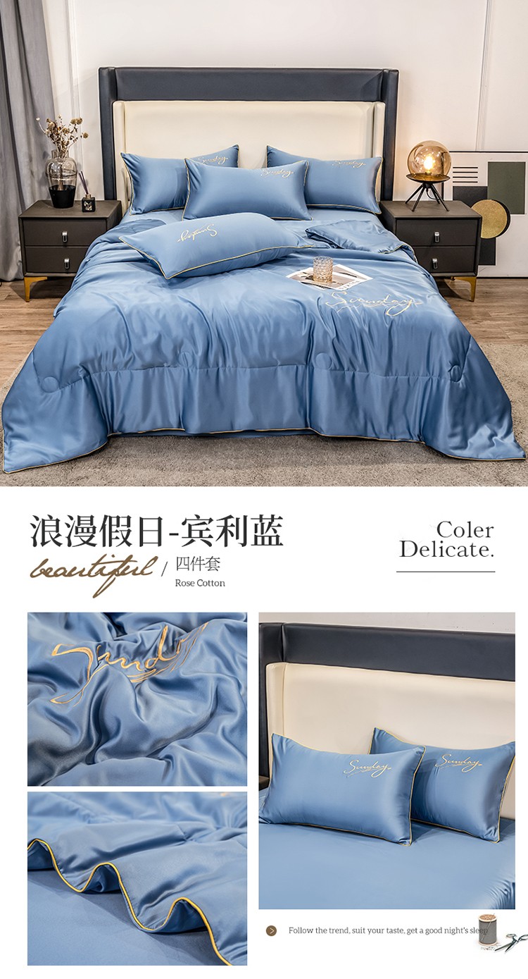商品名称:总 骏腾 2022新款水洗真丝夏被四件套水洗天丝床笠三件套