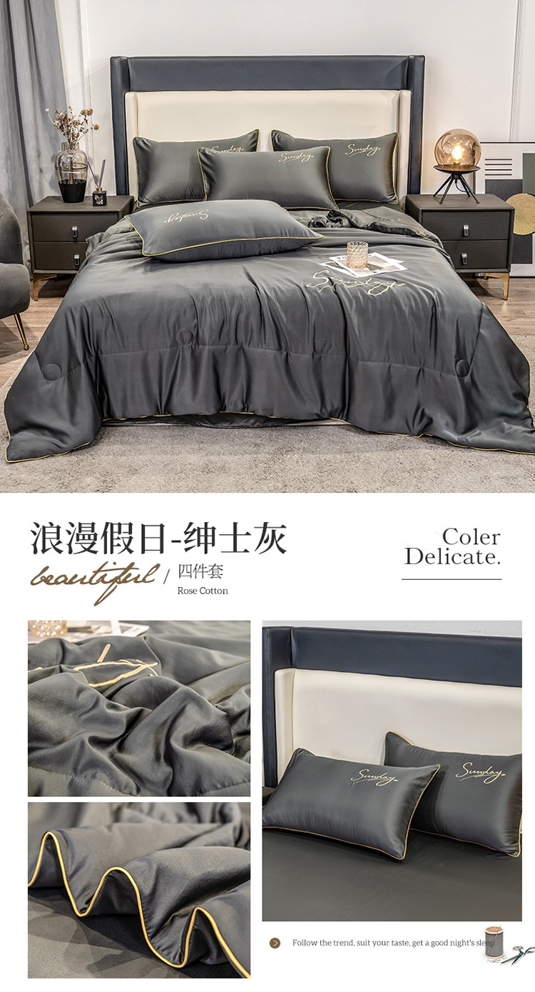 总 骏腾 2022新款水洗真丝夏被四件套水洗天丝床笠三件套