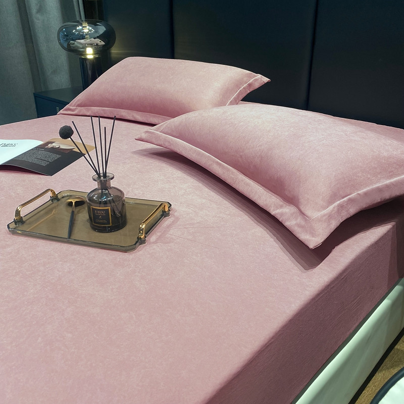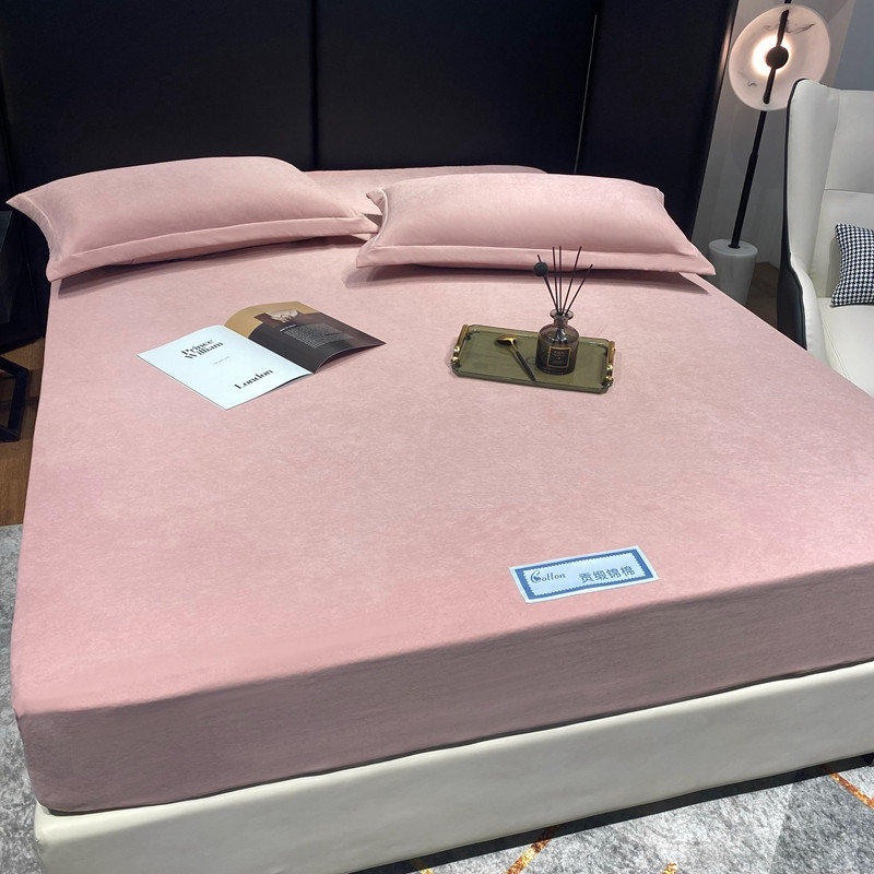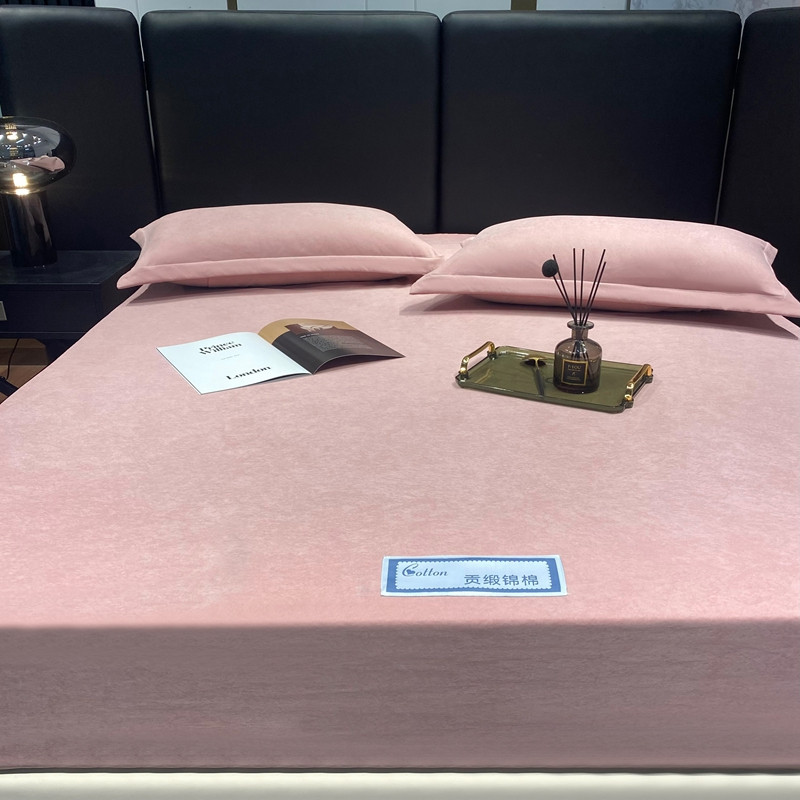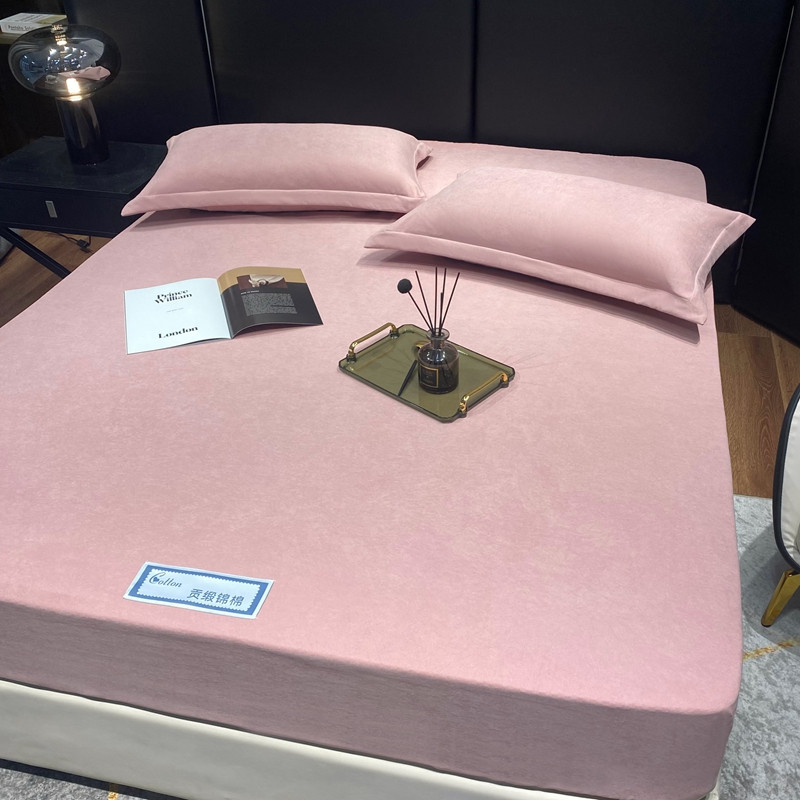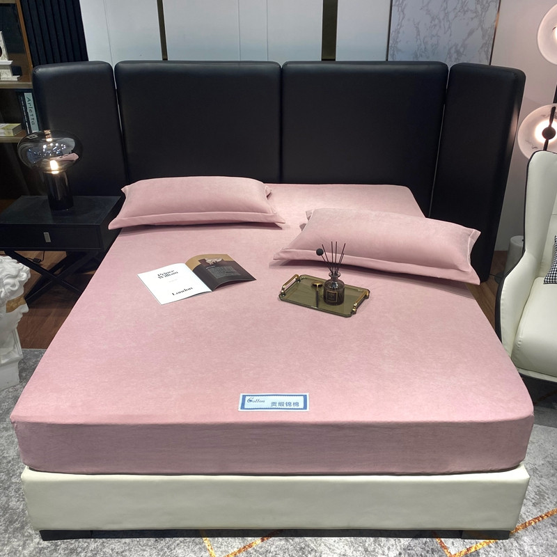 豪选 新款高端贡缎锦棉床笠单层两面用防尘冰丝床罩床垫套 粉