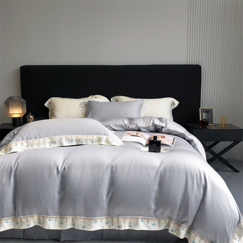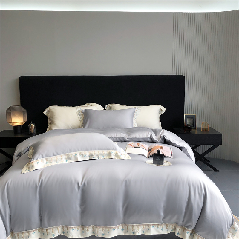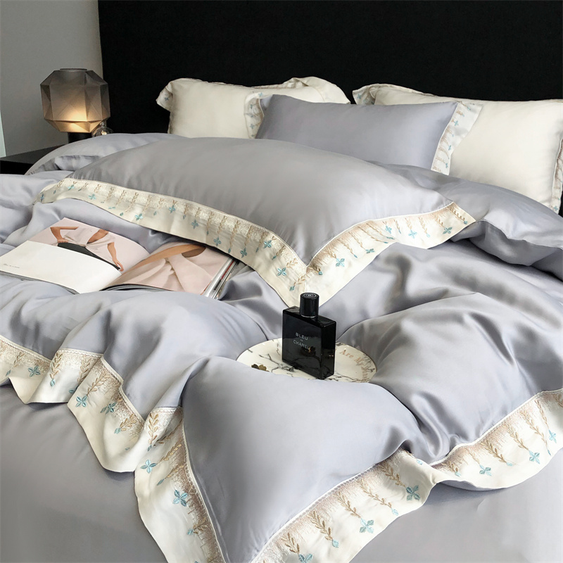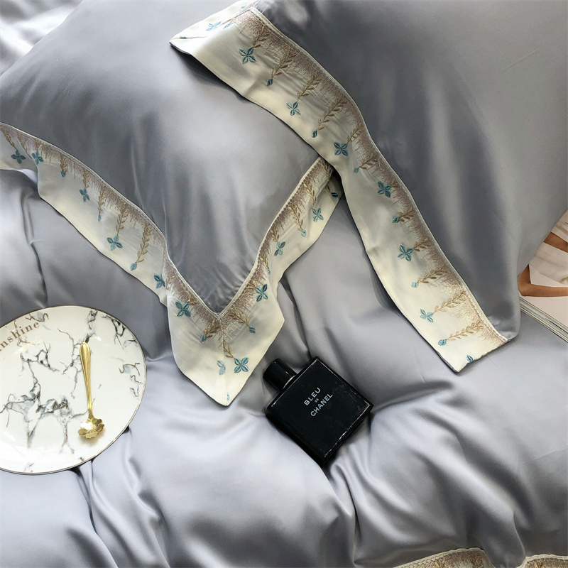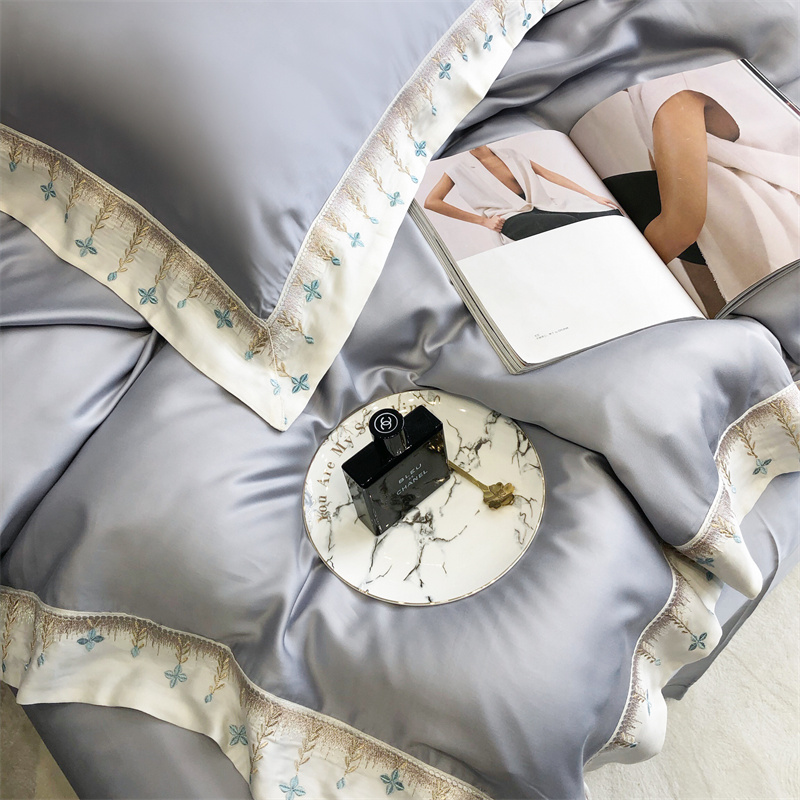 馨蕊 2022新款80S兰精天丝刺绣四件套 米拉-蓝灰