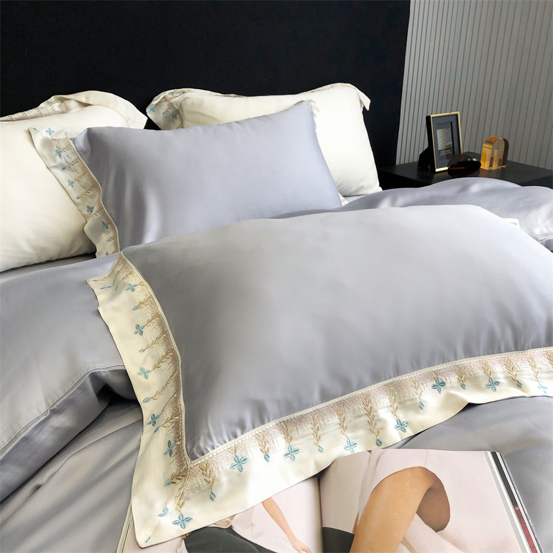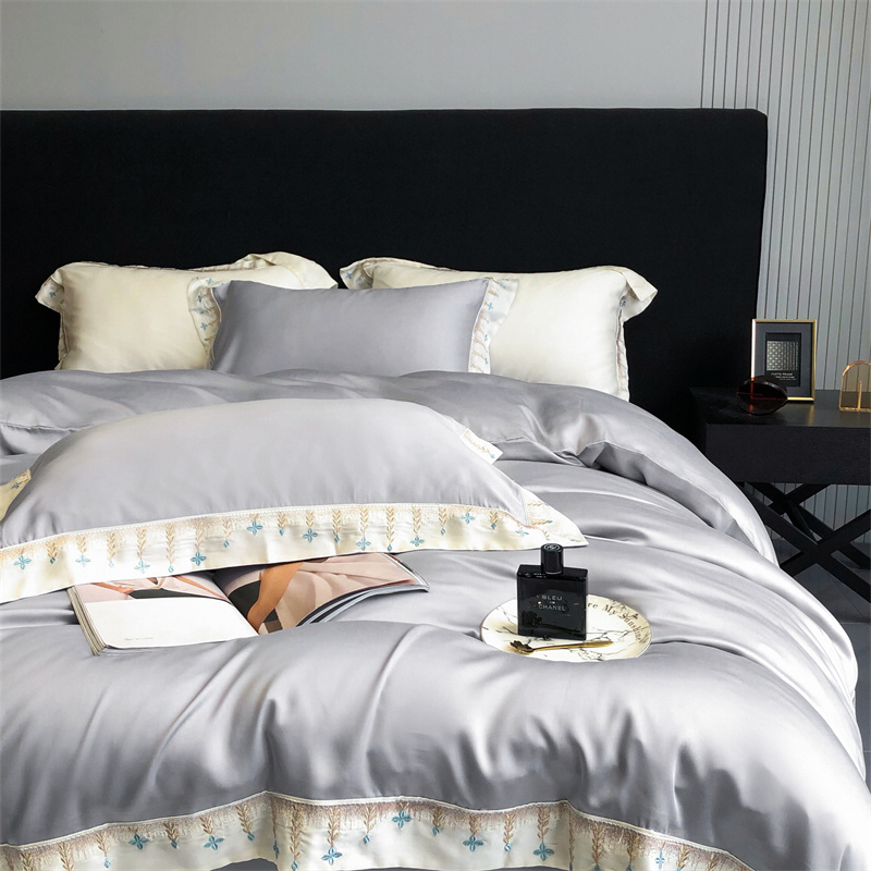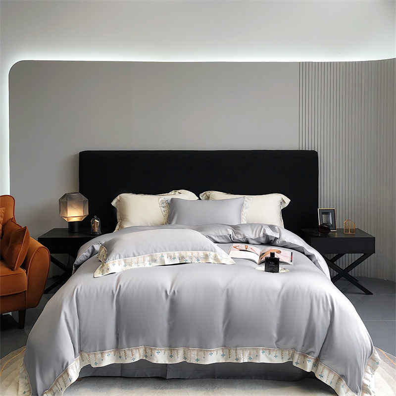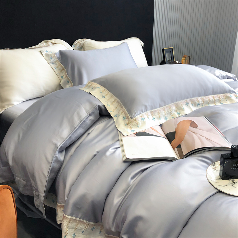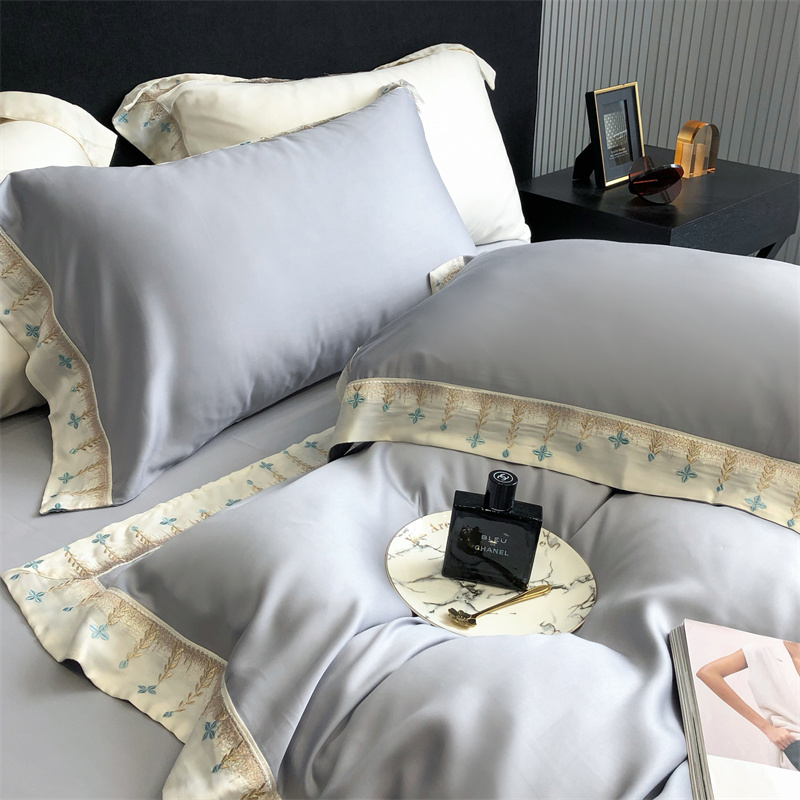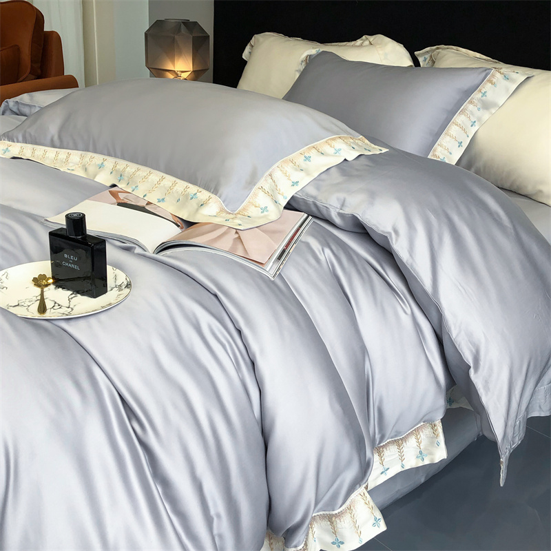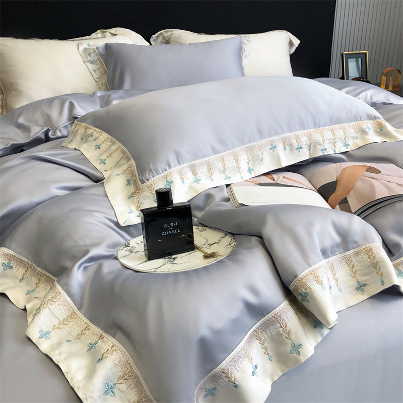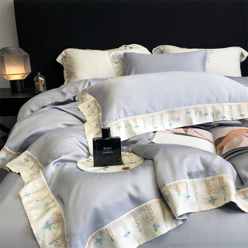商品名称:馨蕊 2022新款80S兰精天丝刺绣四件套 米拉-蓝灰