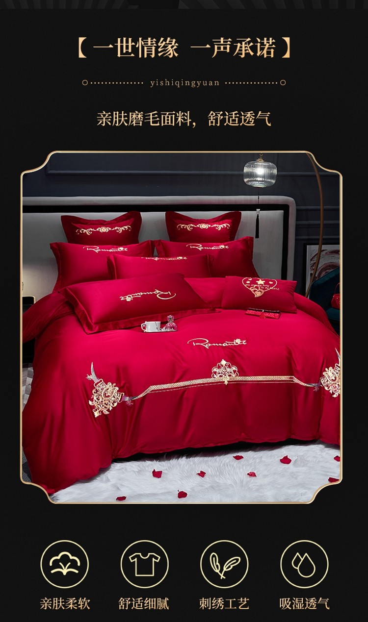 当前位置: 91家纺网 > 商品网购 > 床品套件 > 多件套 > 多件套 > 婚庆四件套大红色刺绣结婚六七件套多件套喜庆婚礼婚被床上用品 爱的约定