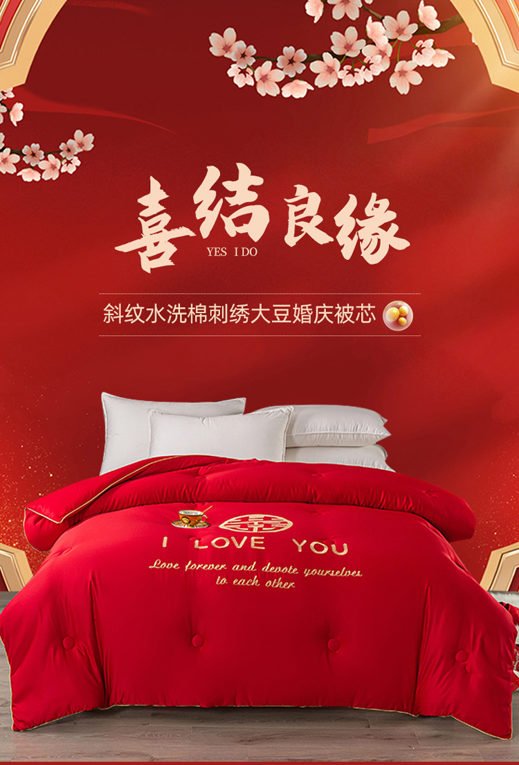 (总)壹张床2025新款婚庆水洗棉大豆冬被,大喜日子