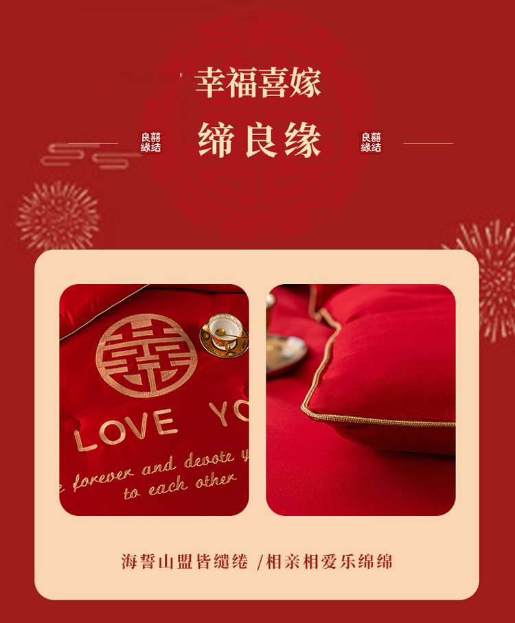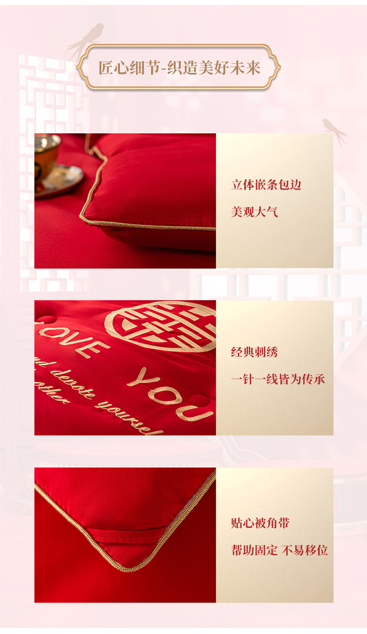 壹张床 新款婚庆斜纹水洗棉绣花冬被大豆春秋被喜庆被大红被子 喜结良缘