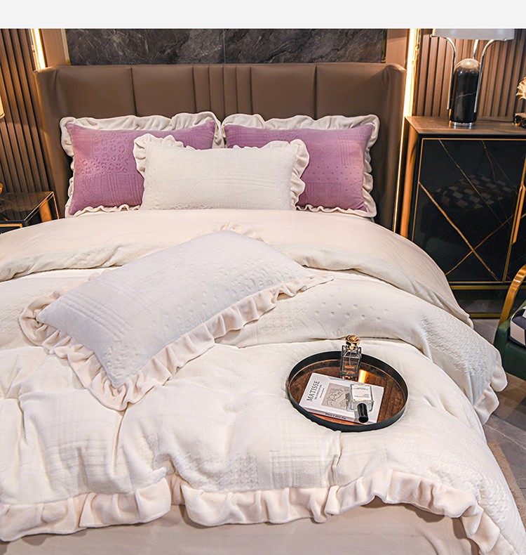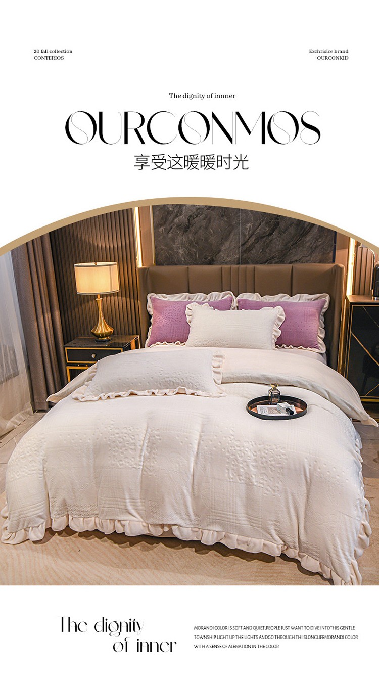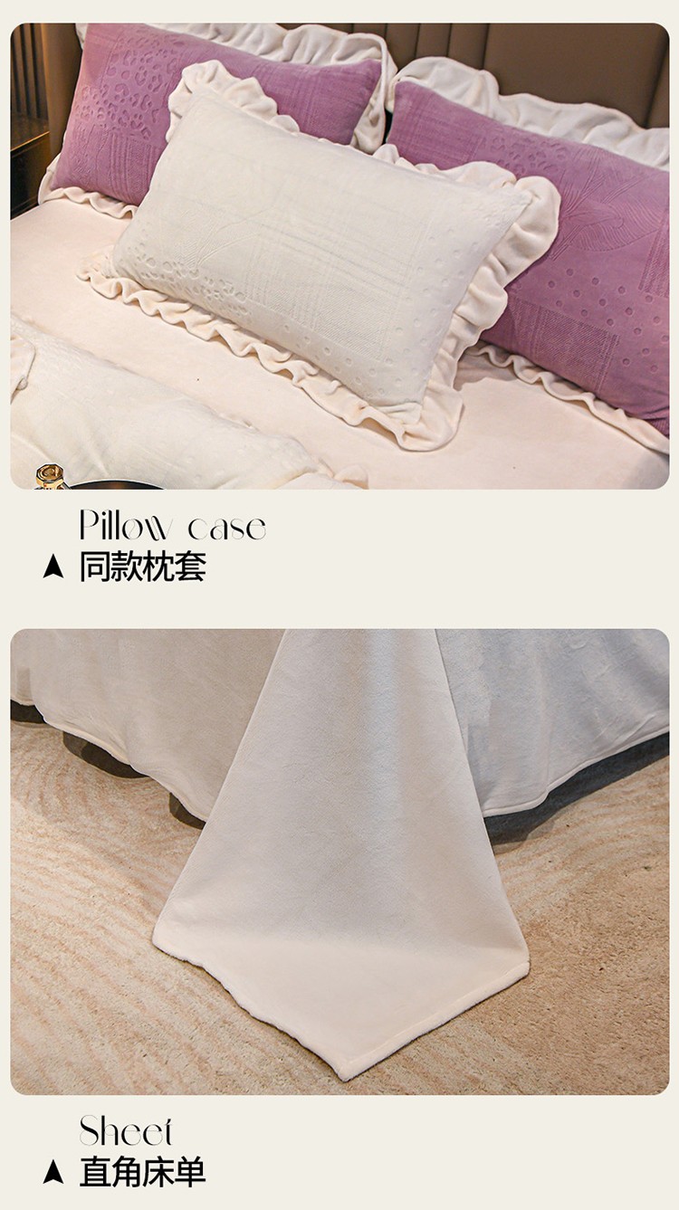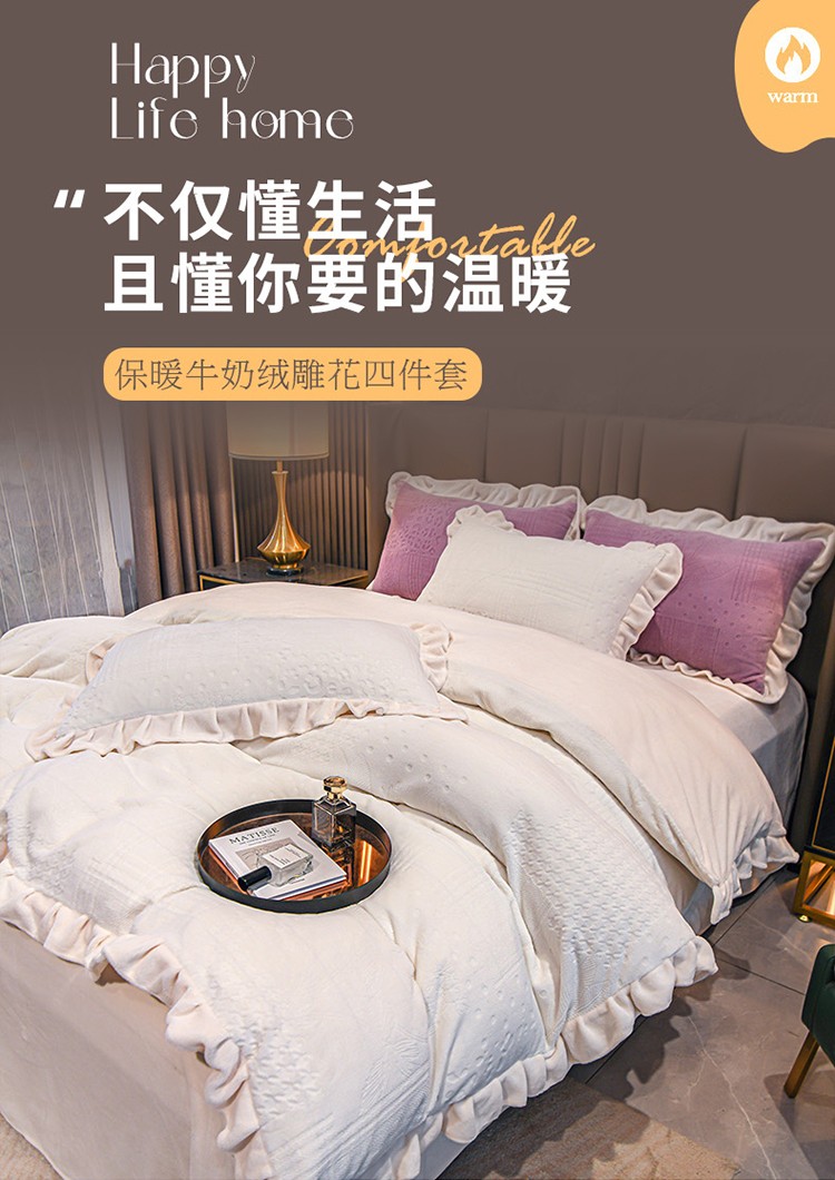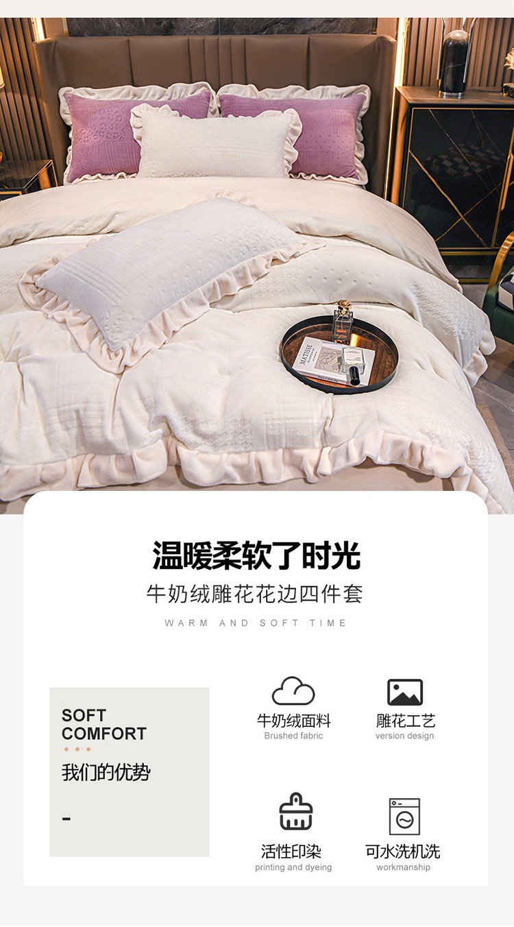 珺柔 2022新款220高克重牛奶绒雕花时尚花边款四件套 悦薇(白)