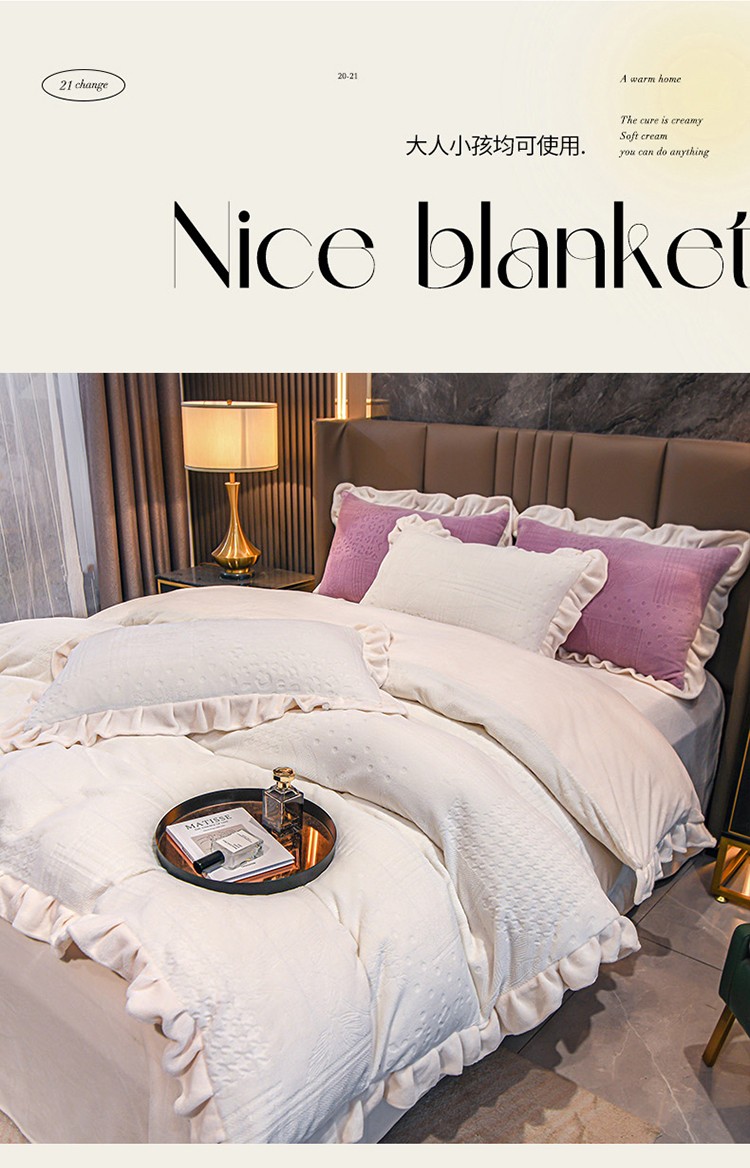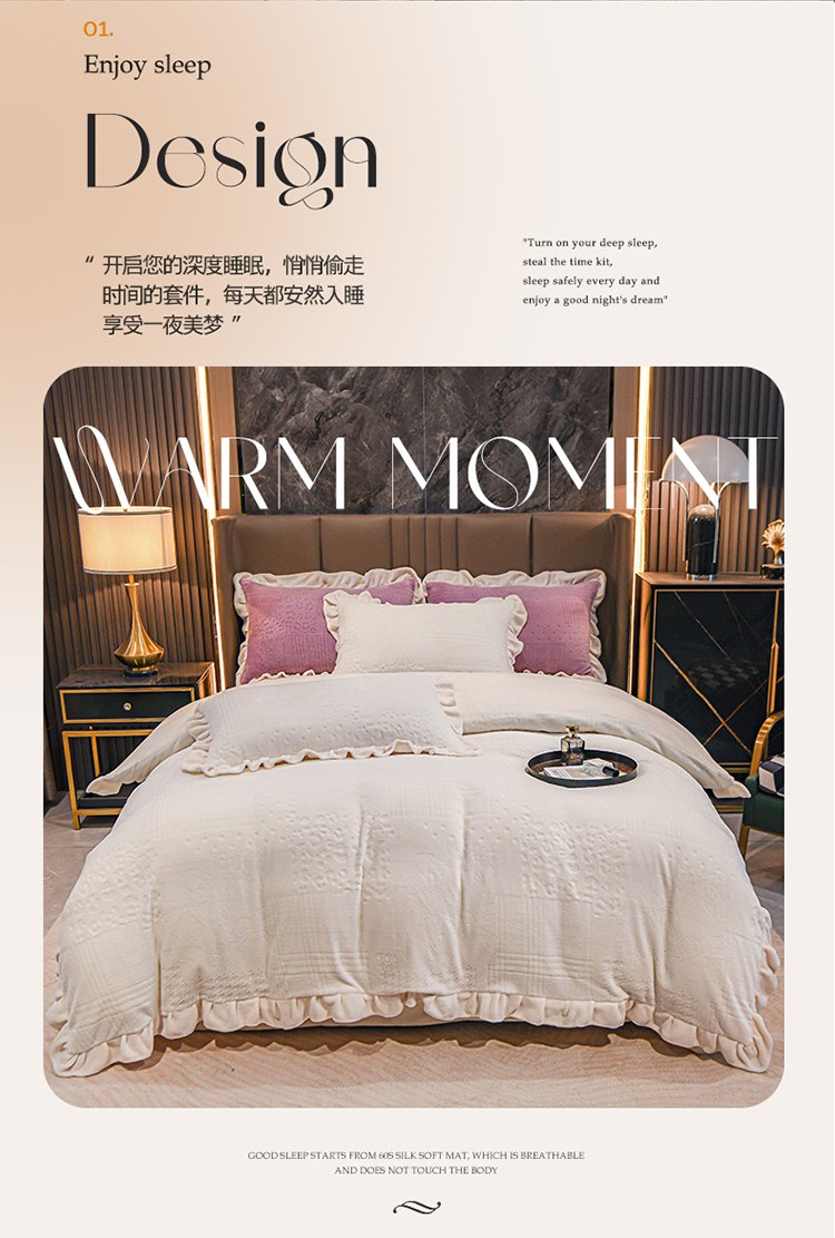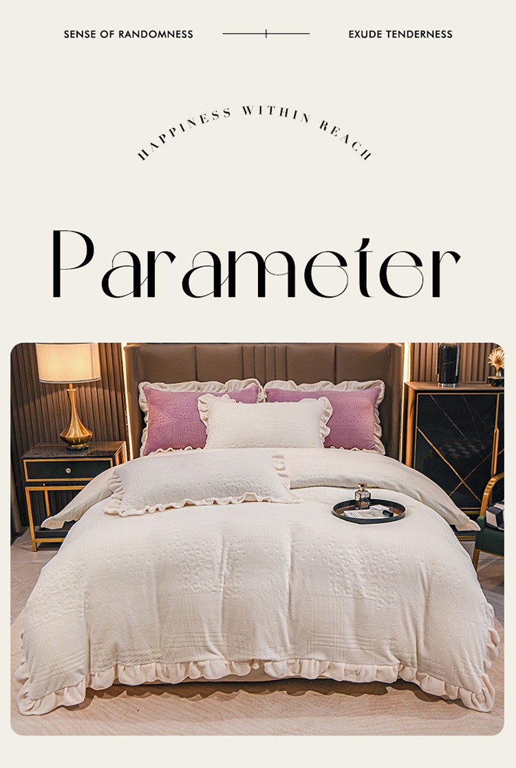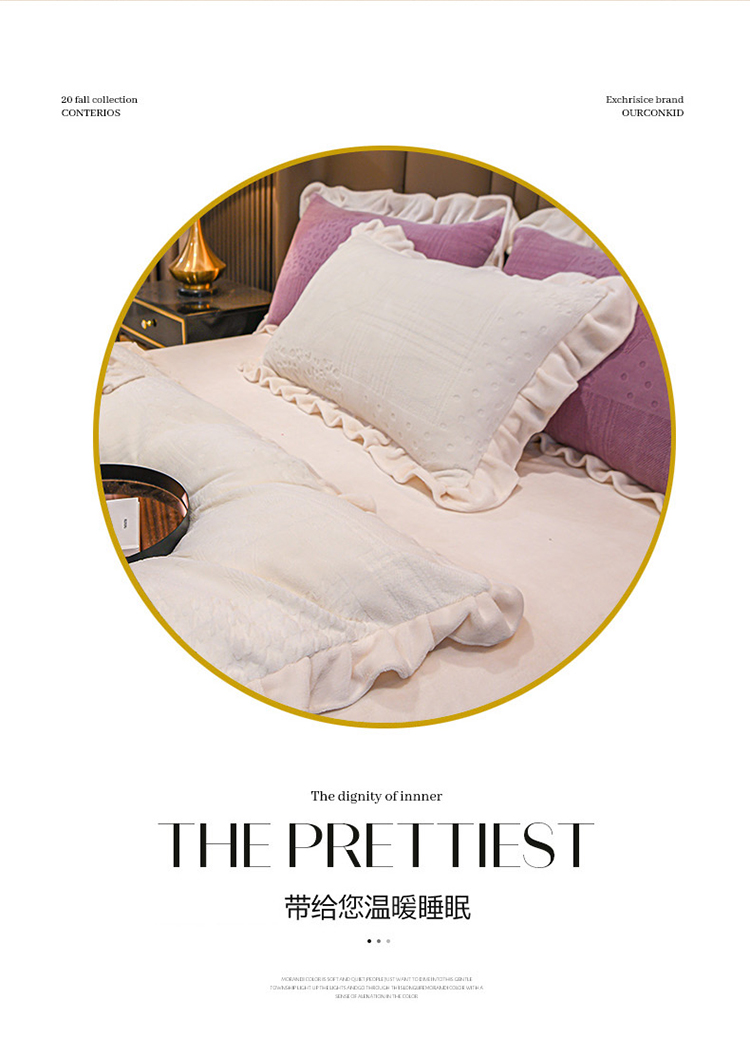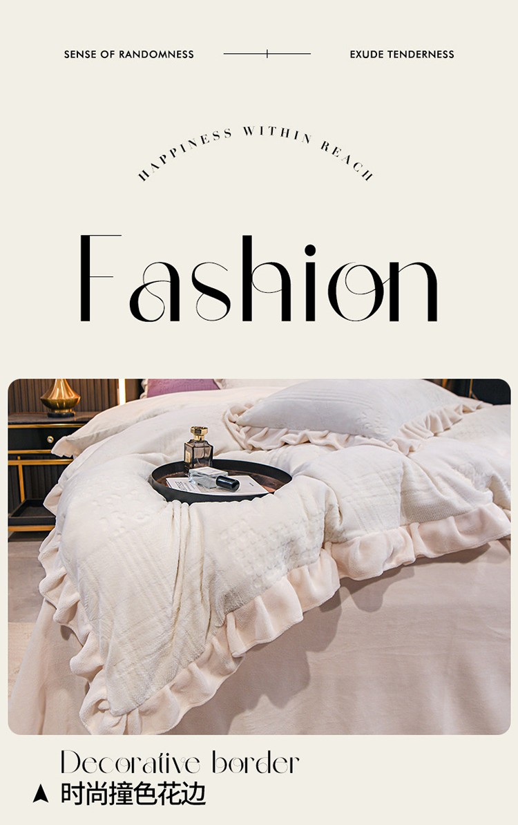 珺柔 2022新款220高克重牛奶绒雕花时尚花边款四件套 悦薇(白)