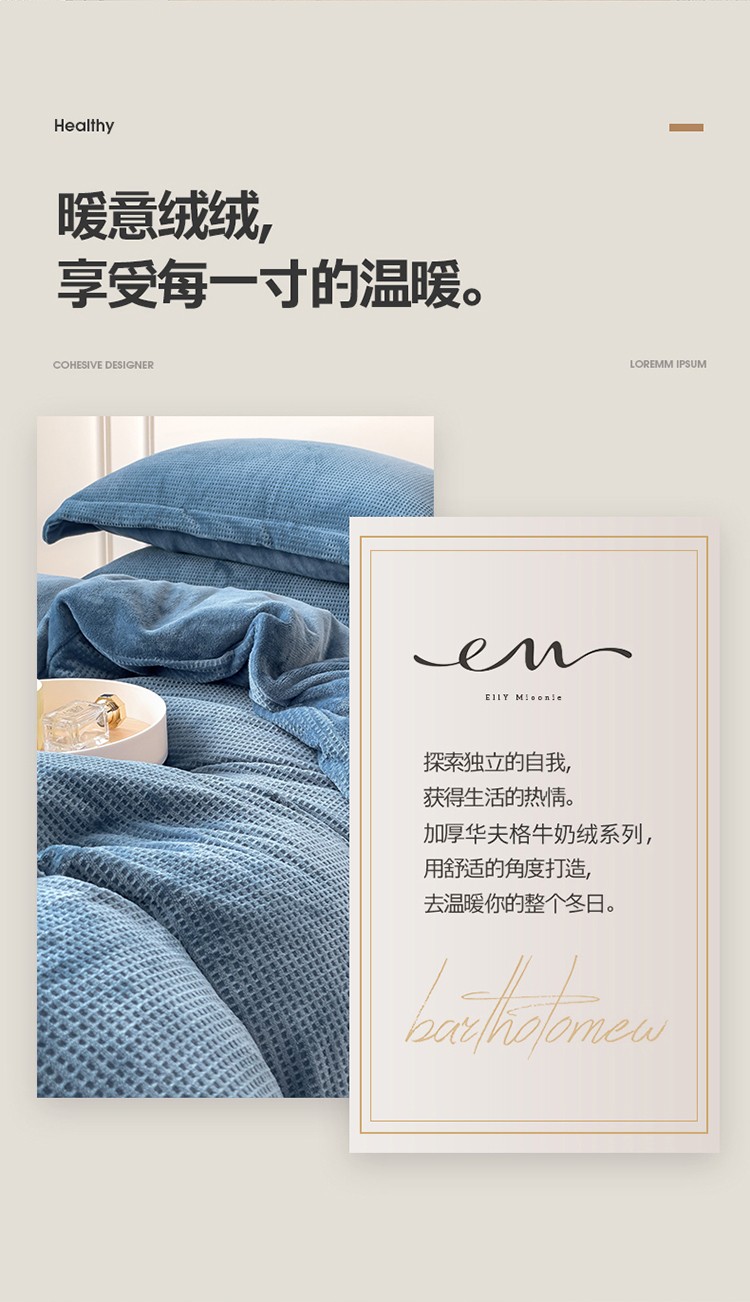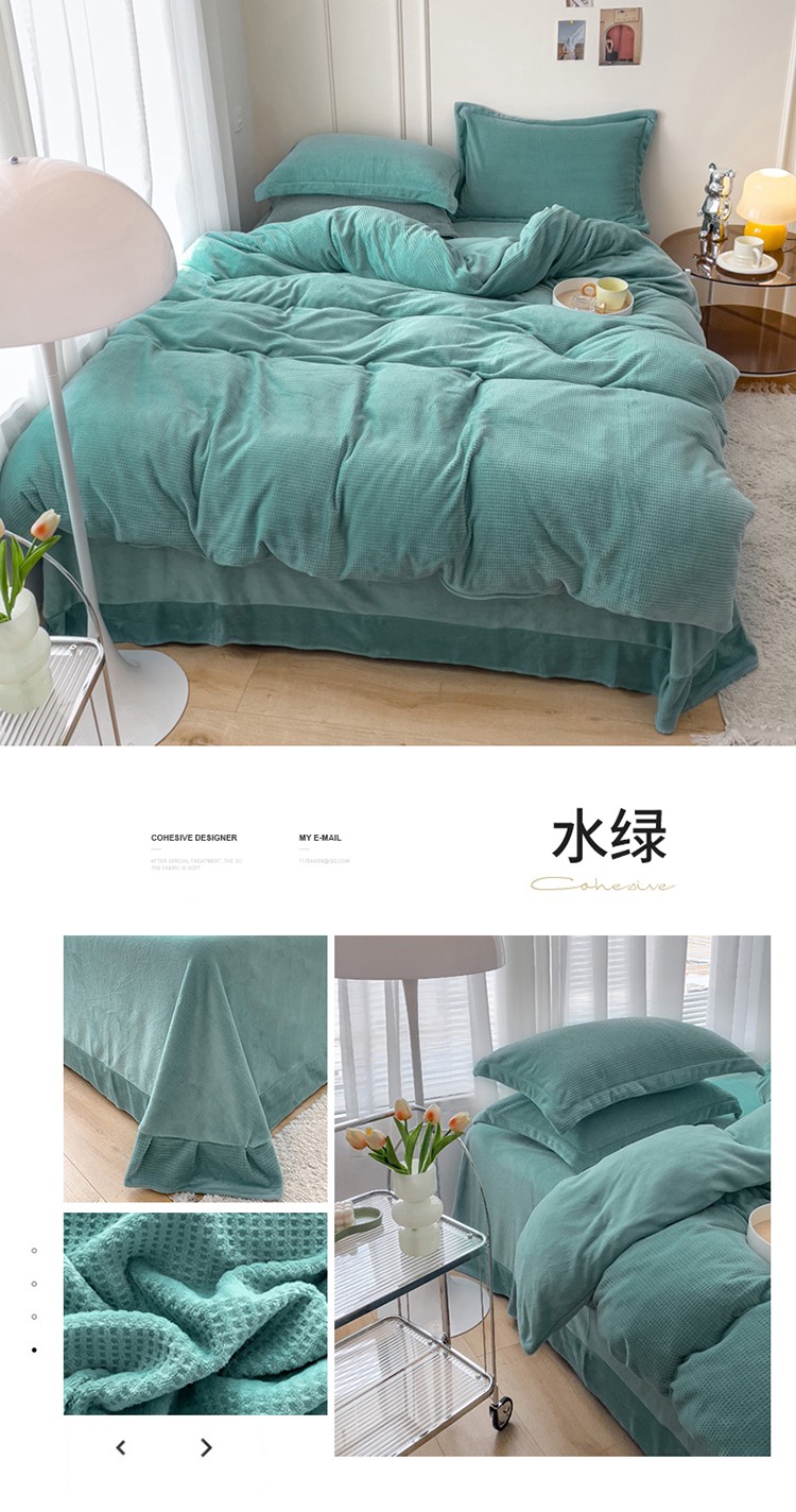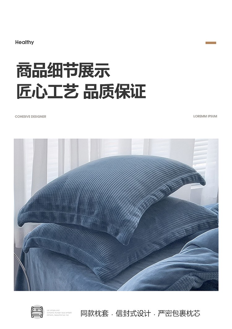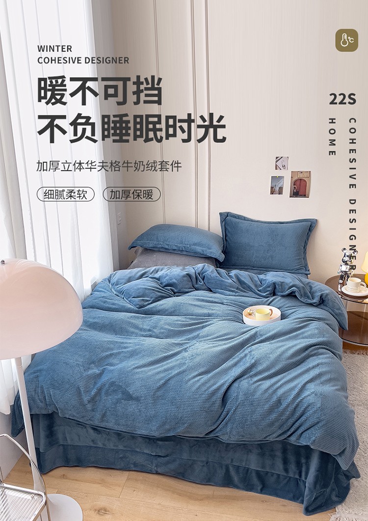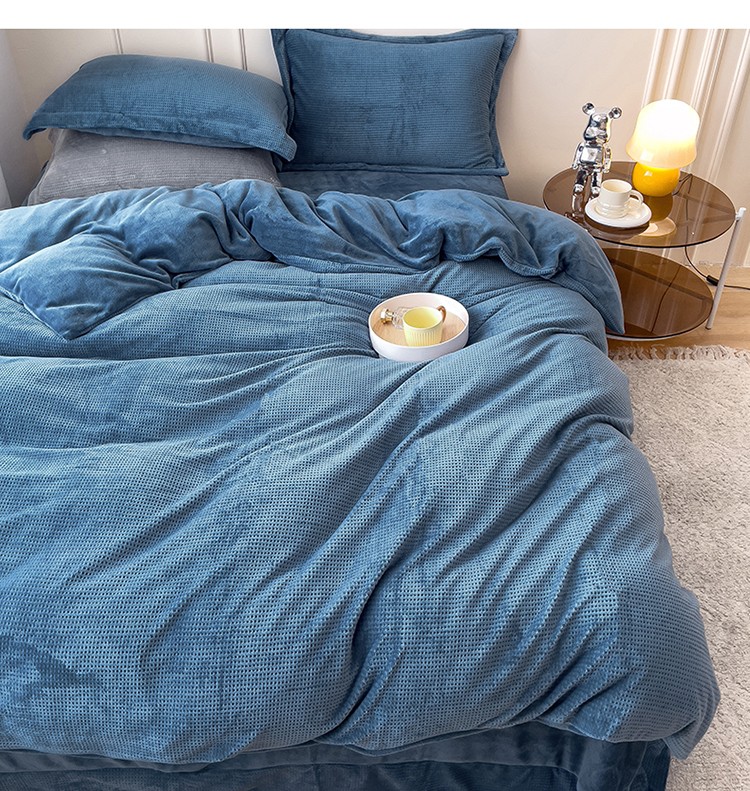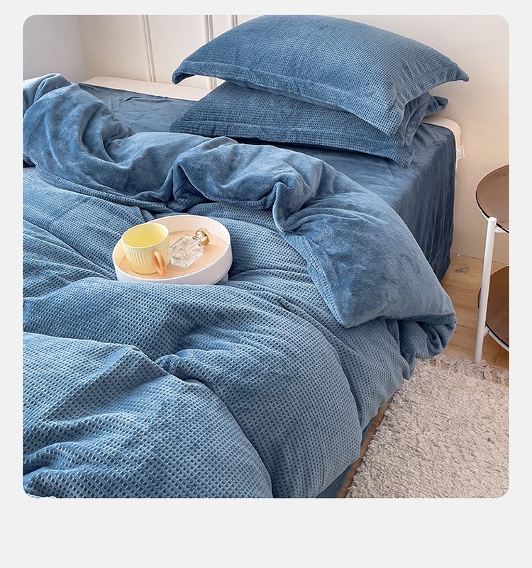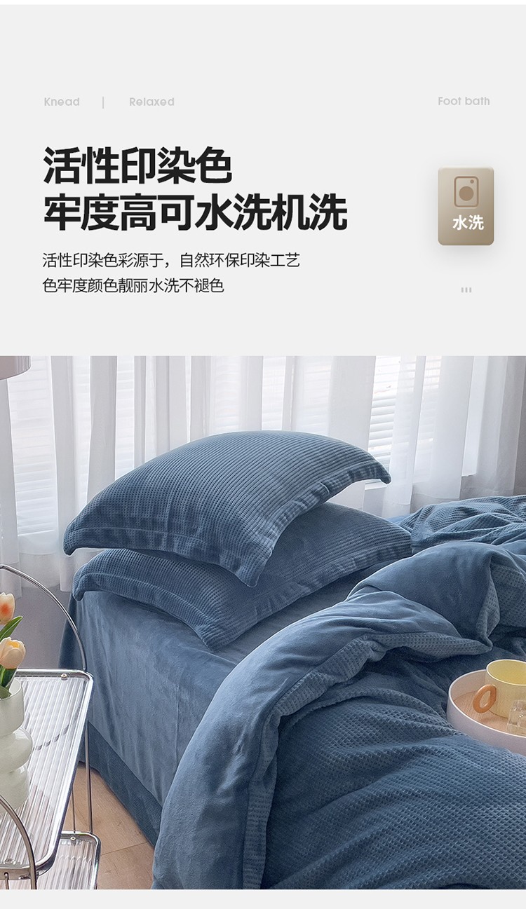 (总)珺柔 2022新款华夫格纯色加厚立体牛奶绒四件套