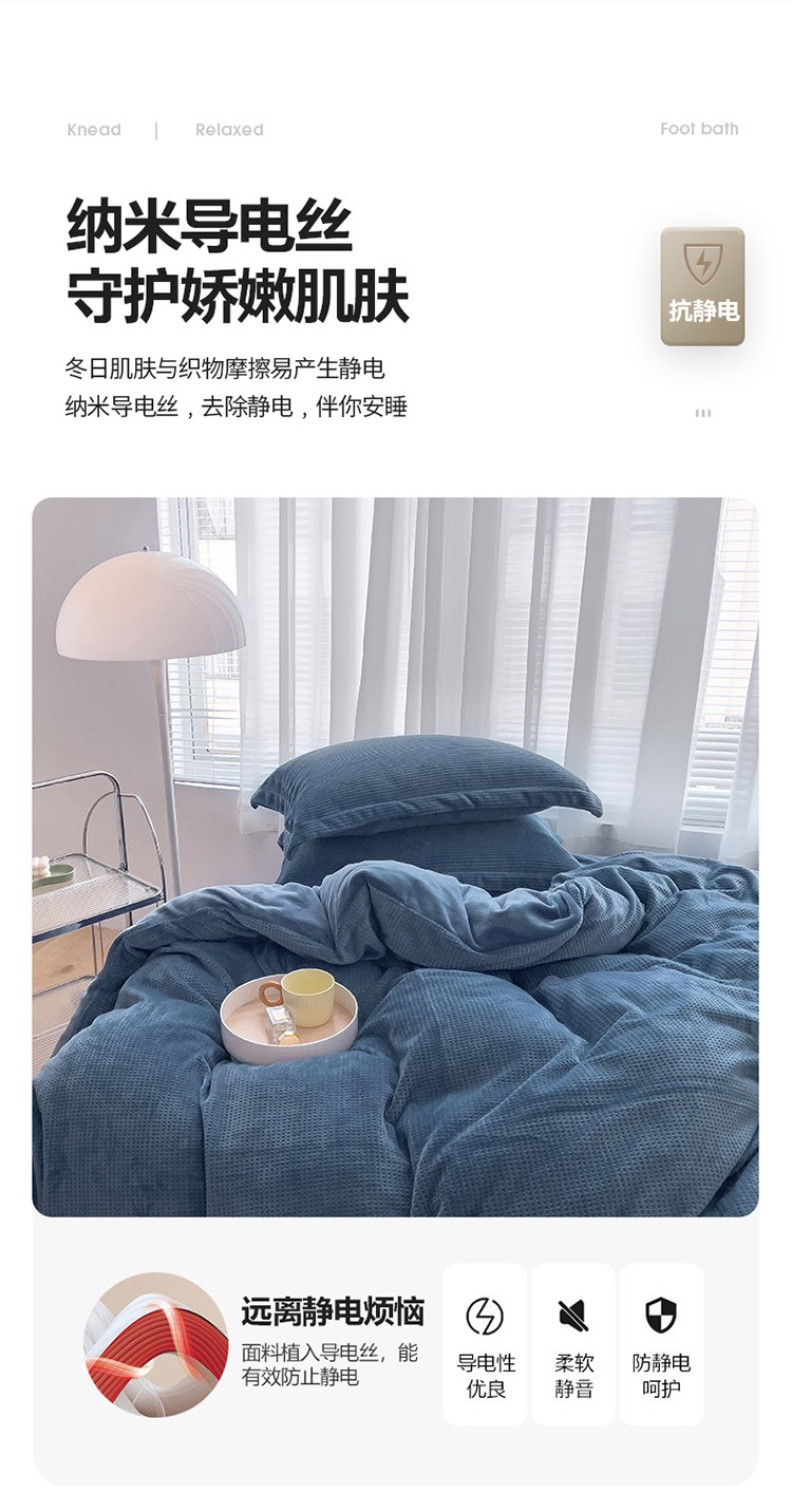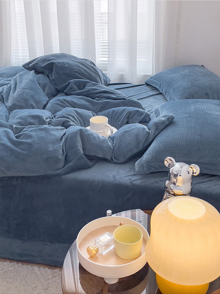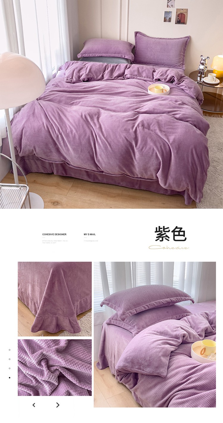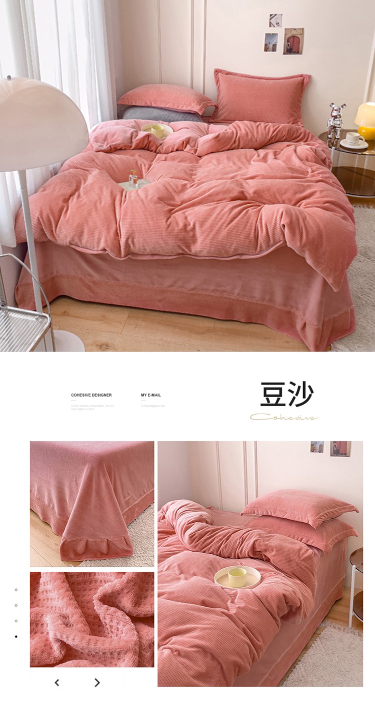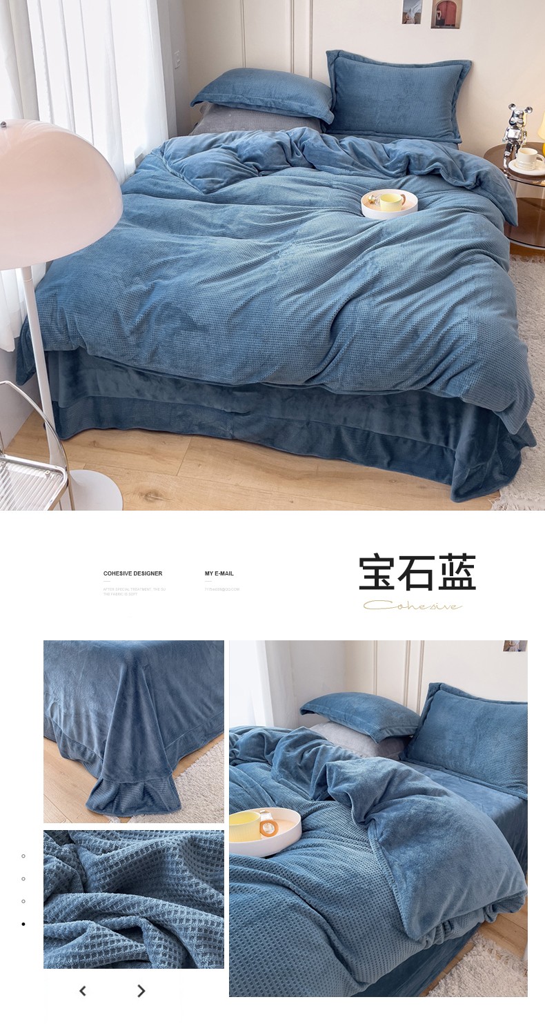 (总)珺柔 2022新款华夫格纯色加厚立体牛奶绒四件套