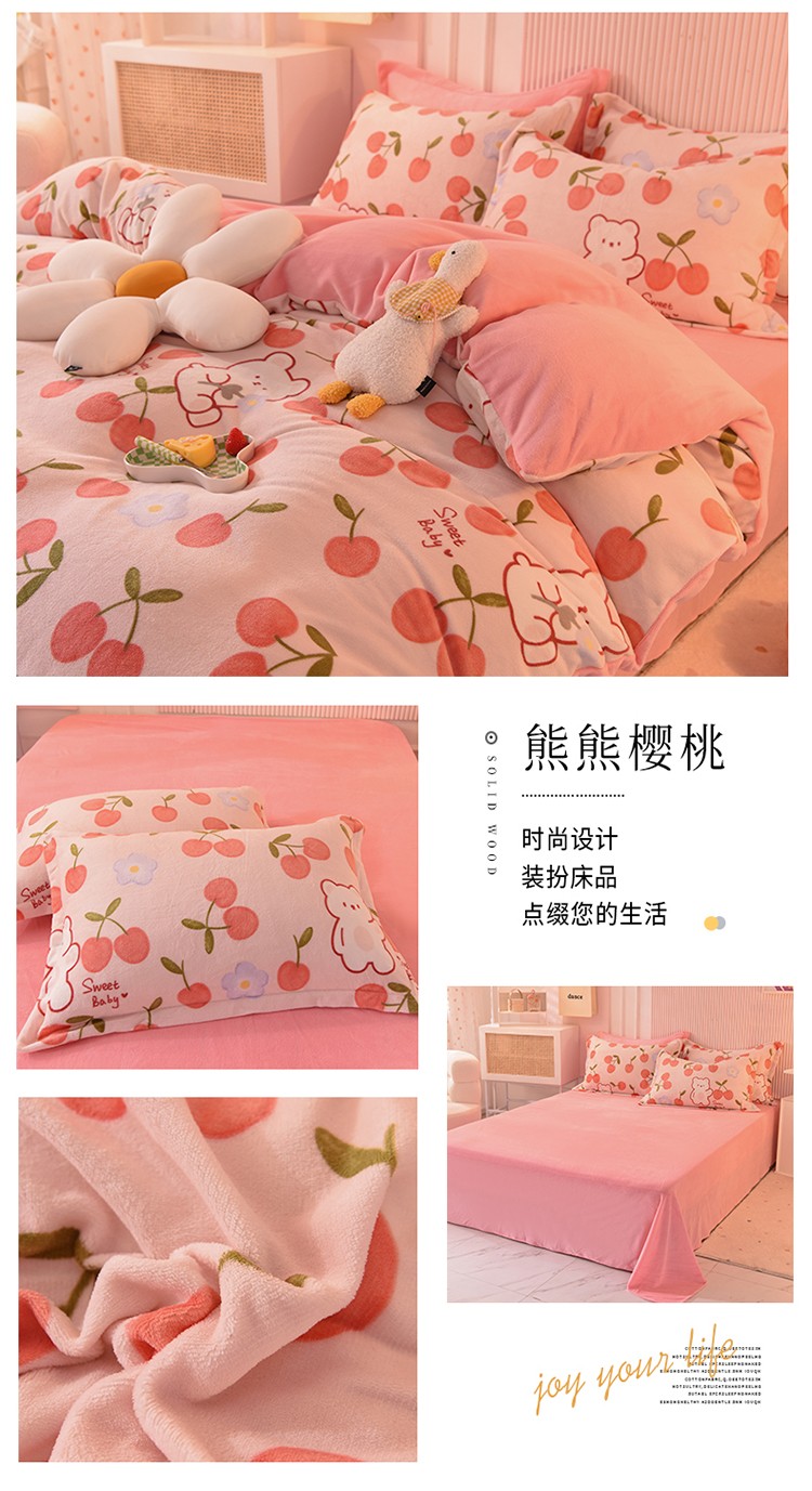 当前位置: 91家纺网 > 商品网购 > 床品套件 > 四件套 > 牛奶绒四件套 > 梦之岛2022新款印花牛奶绒四件套 熊熊樱桃