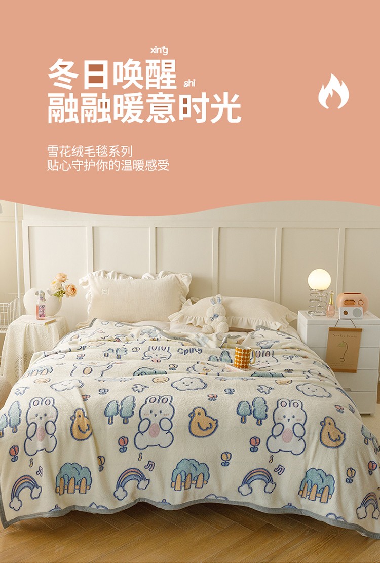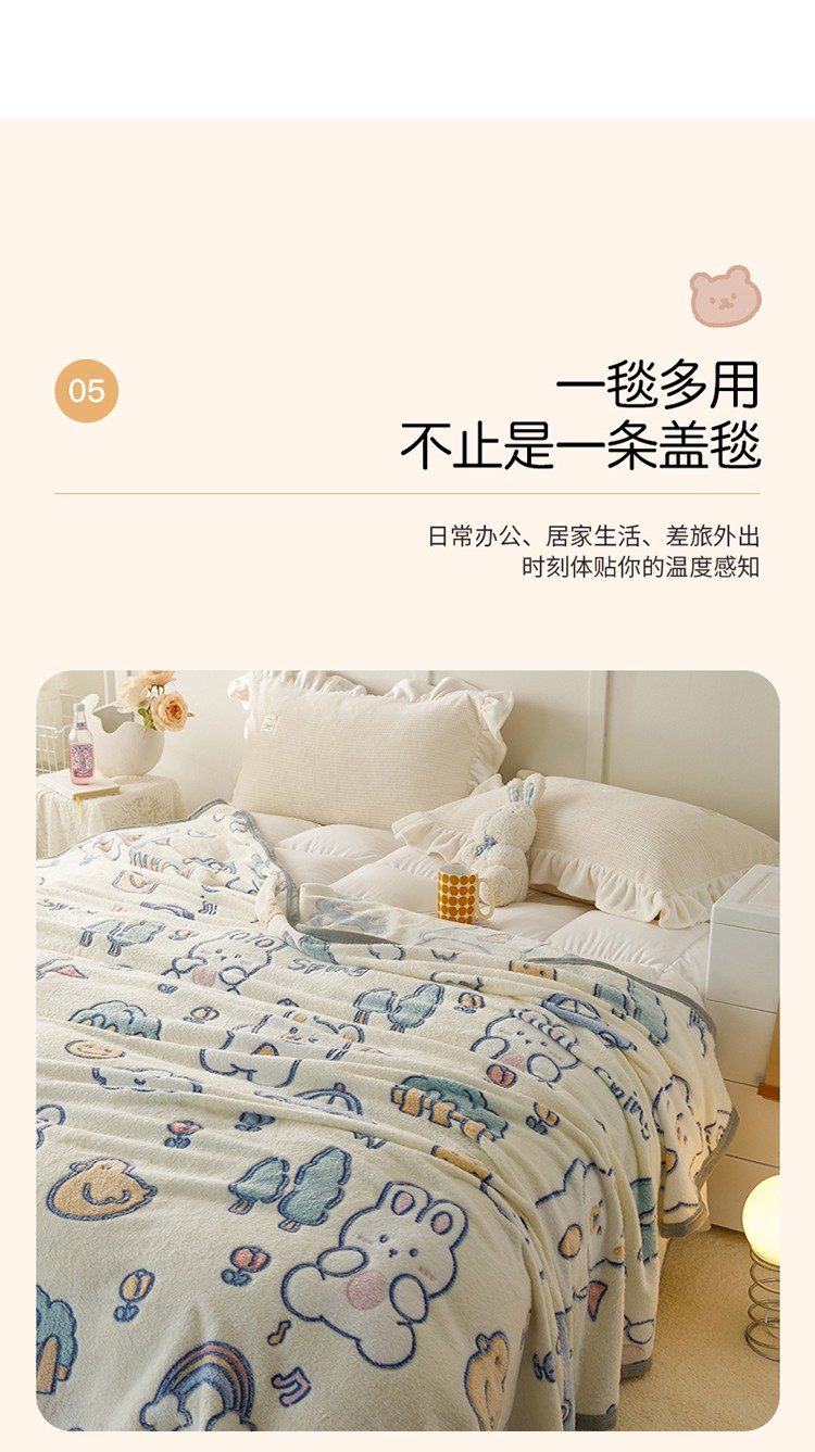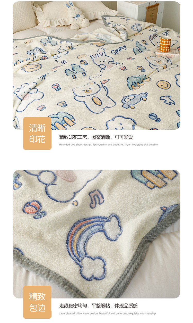 慕尚2022新款雪花绒毛毯印花牛奶绒盖毯沙发午睡毯子动物巴士
