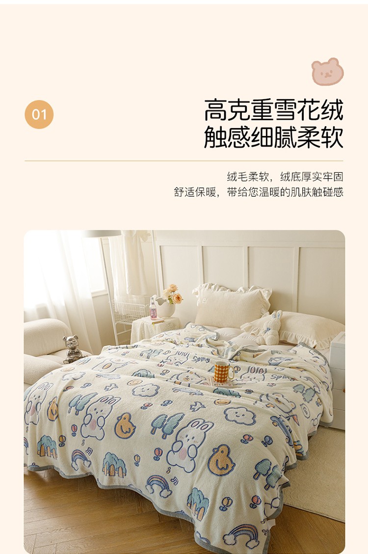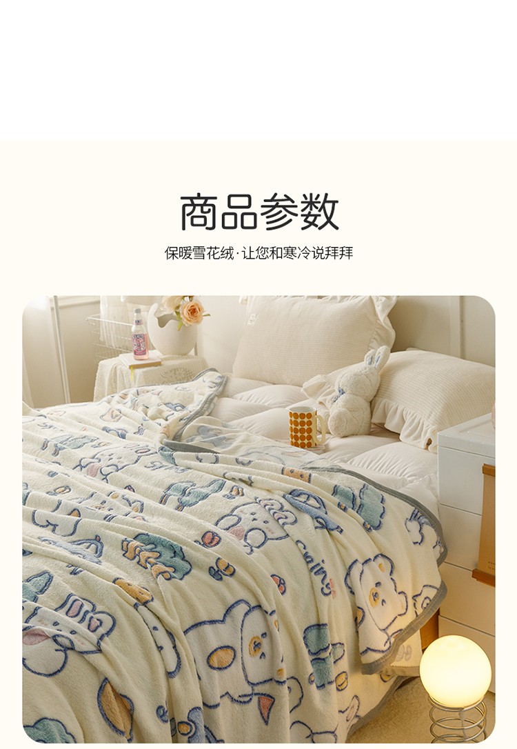 商品名称:慕尚2022新款雪花绒毛毯印花牛奶绒盖毯沙发午睡毯子动物巴士