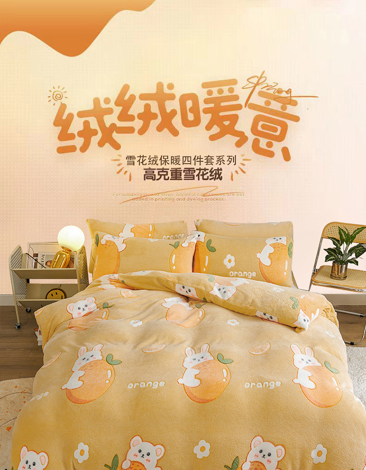 (总)被多多 2022新款高克重雪花绒保暖印花四件套,爱心彩虹,波西米亚,海底世界,蔓蔓花舞,萌萌兔,奶牛灰,牛油果,四叶草,太空漫游,樱桃女孩