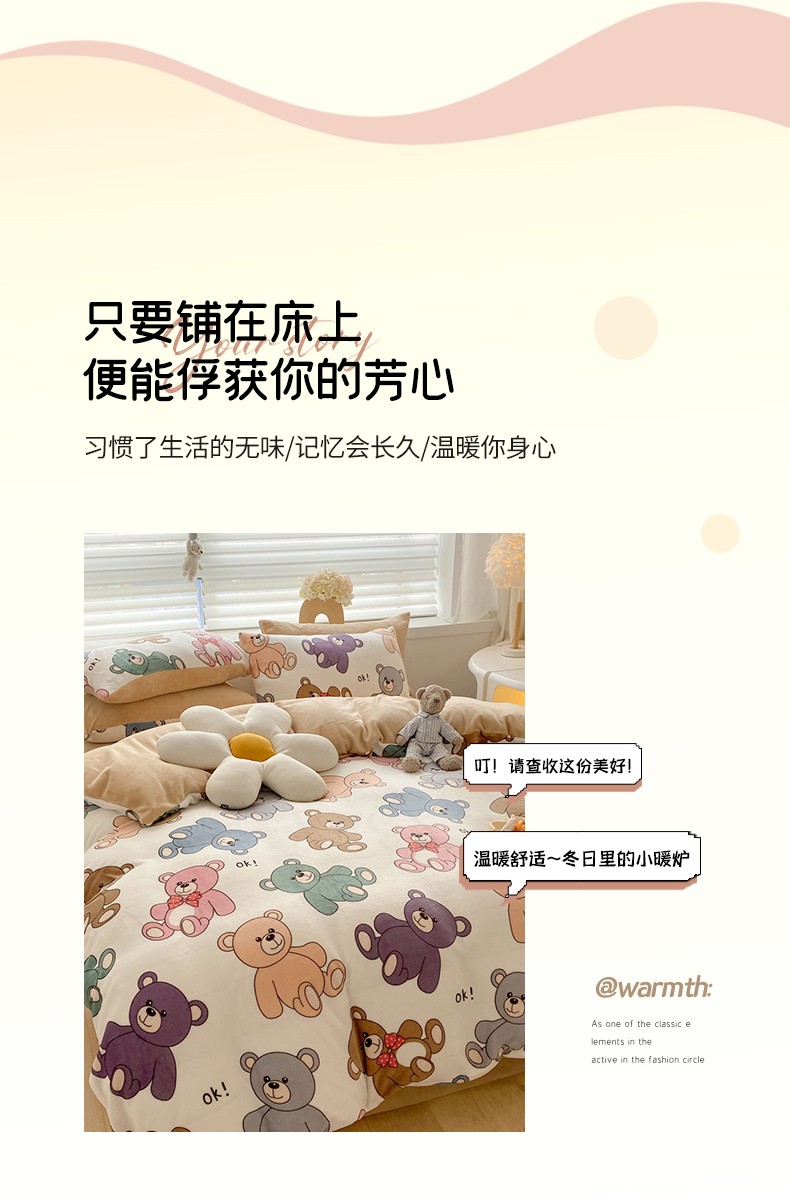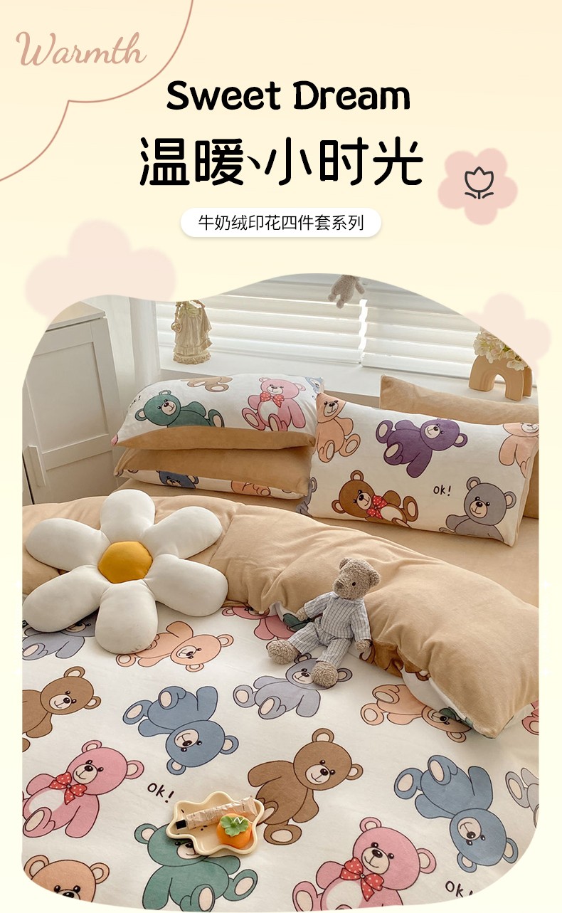 当前位置: 91家纺网 > 商品网购 > 床品套件 > 四件套 > 牛奶绒四件套 > 古吉梦 2022年新款牛奶绒印花四件套 可可熊