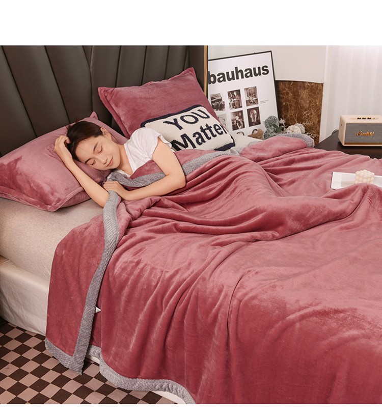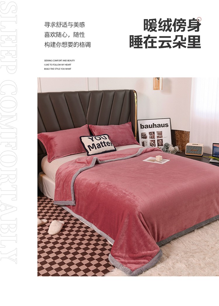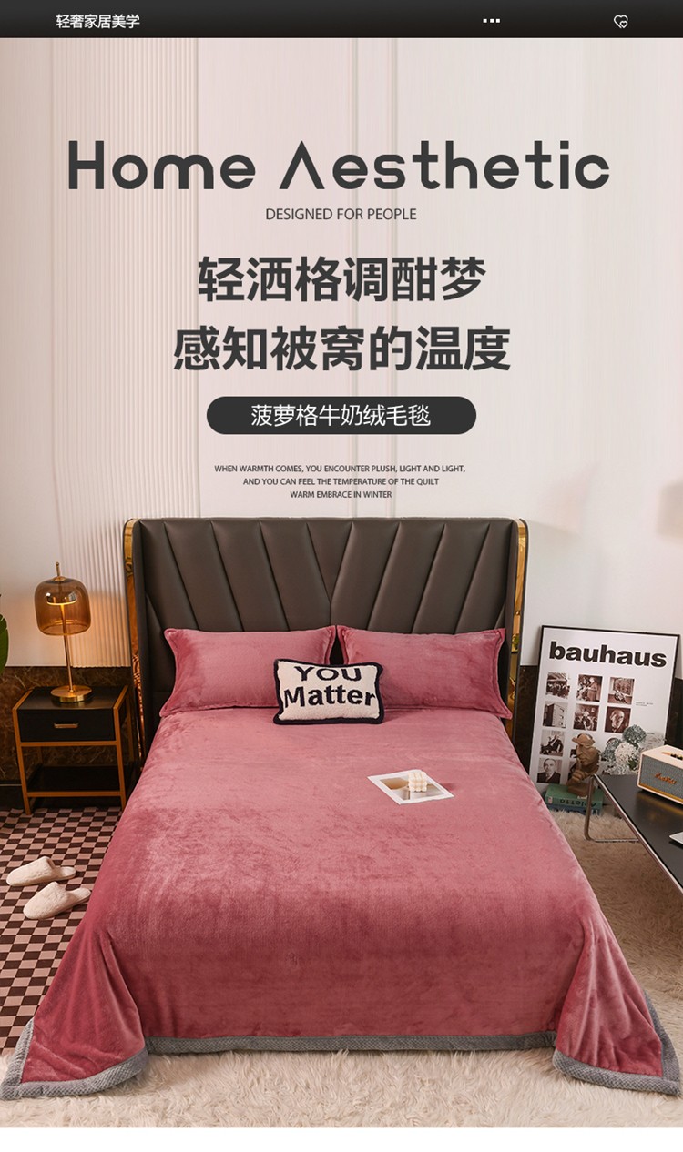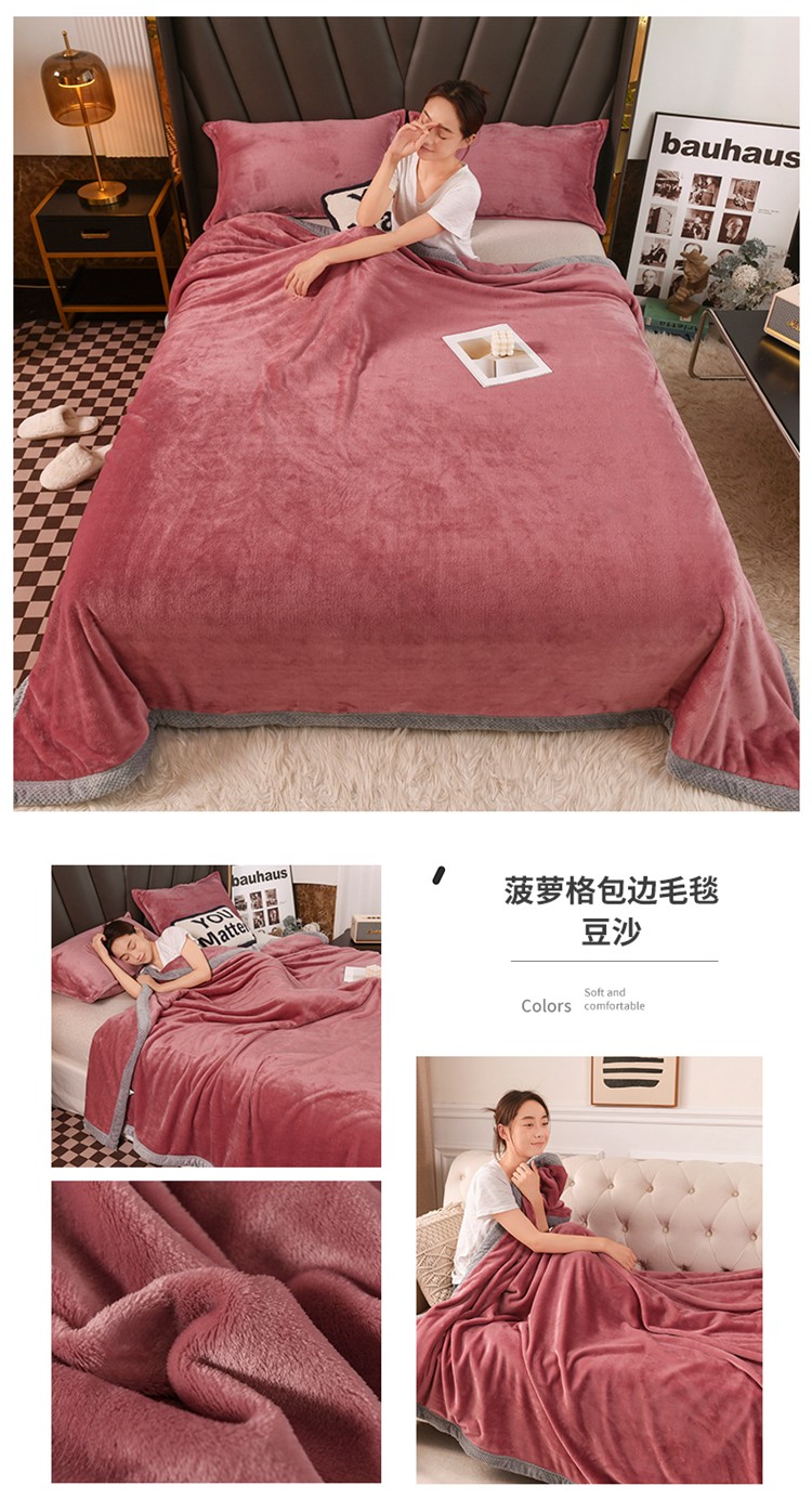 雅萱 2024新款菠萝格牛奶绒包边毛毯 豆沙