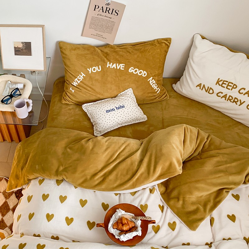 当前位置: 91家纺网 > 商品网购 > 床品套件 > 四件套 > 牛奶绒四件套 > 顾里2022新款ins博主混搭牛奶绒四件套 黄心