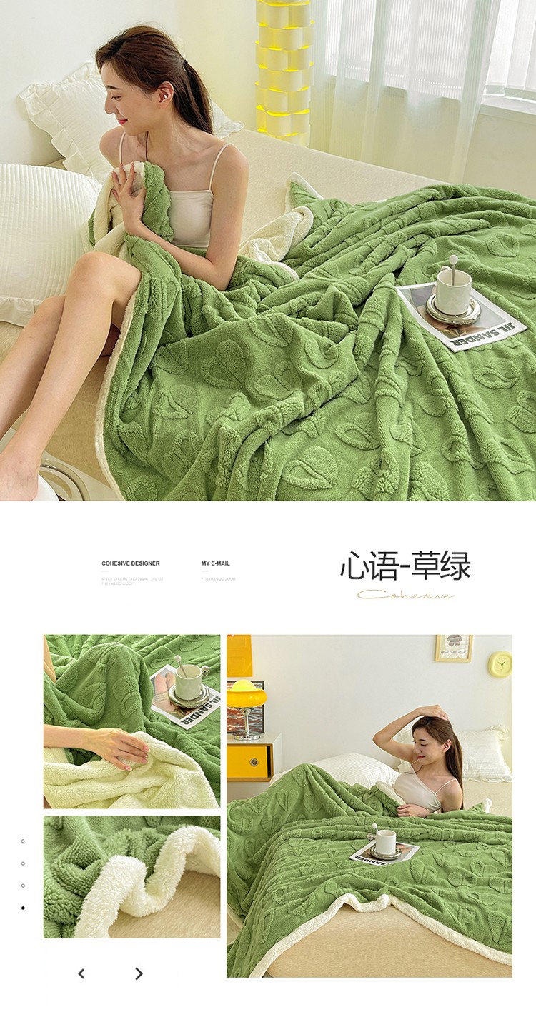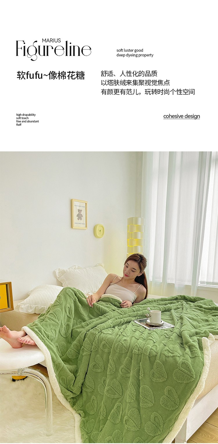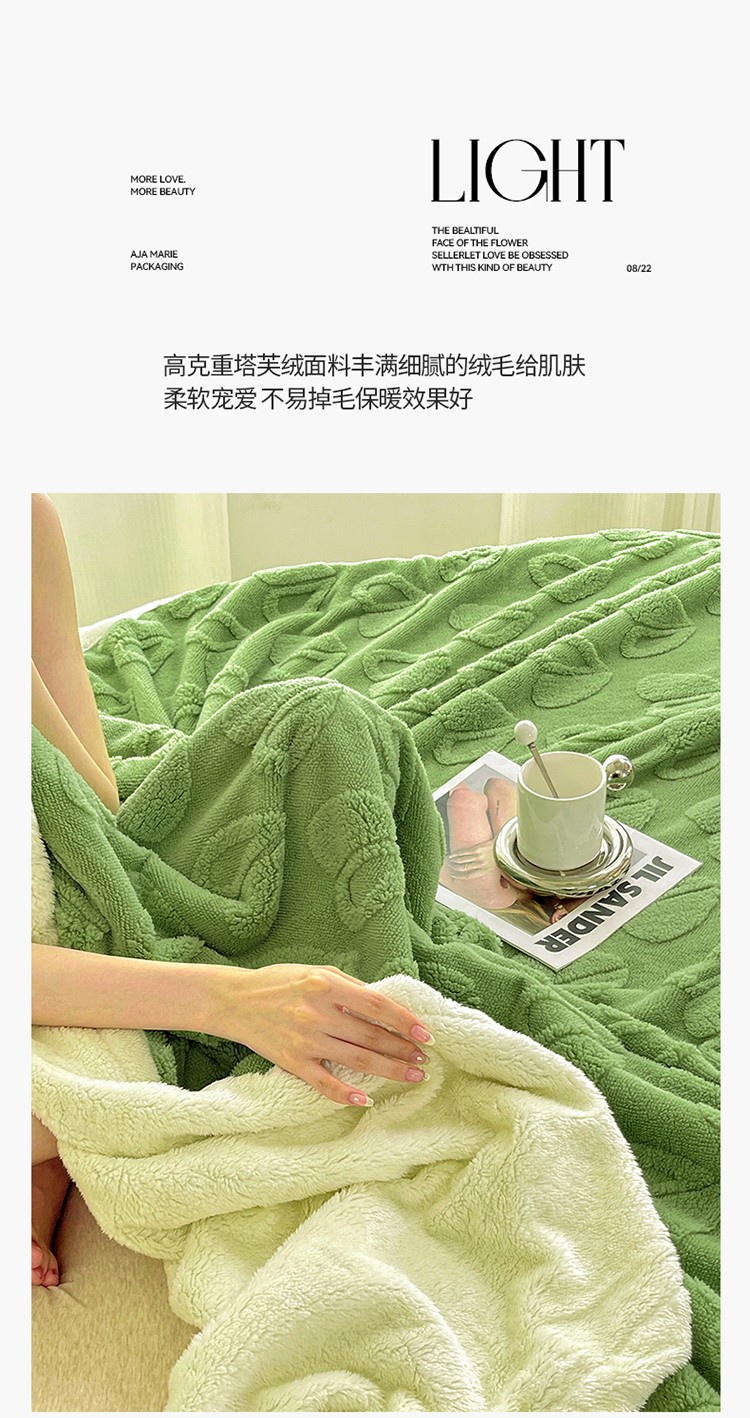 商品名称:澳梵 2022新款塔芙绒毛毯【蜜语-心语系列】 心语-草绿
