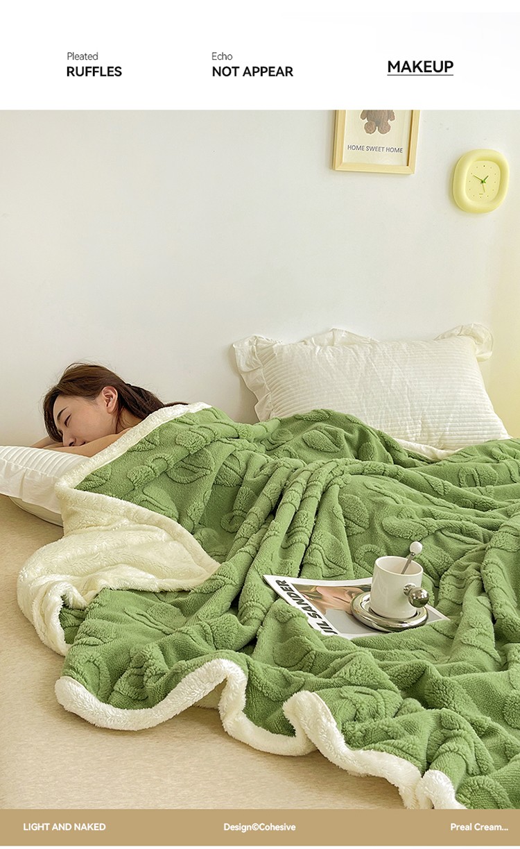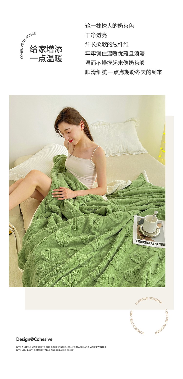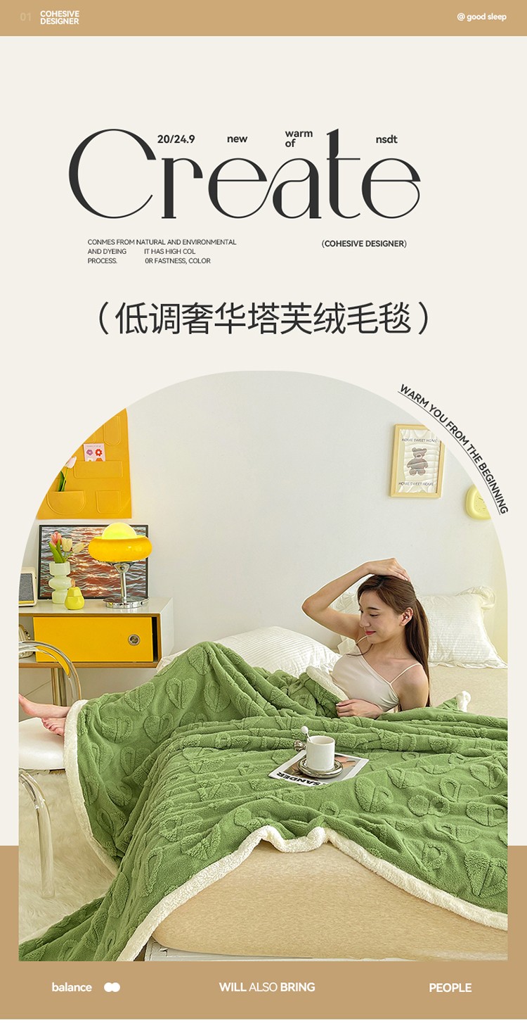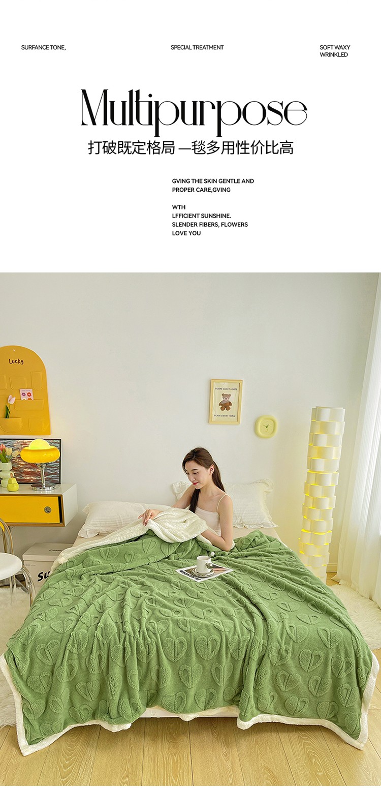商品名称:澳梵 2022新款塔芙绒毛毯【蜜语-心语系列】 心语-草绿