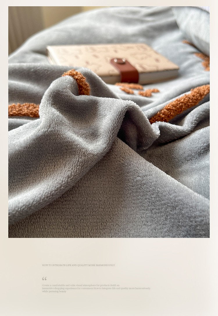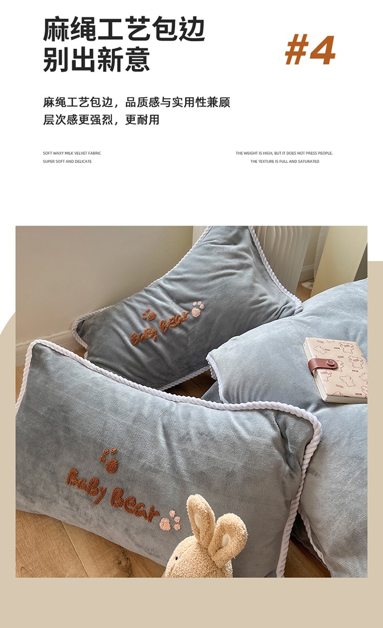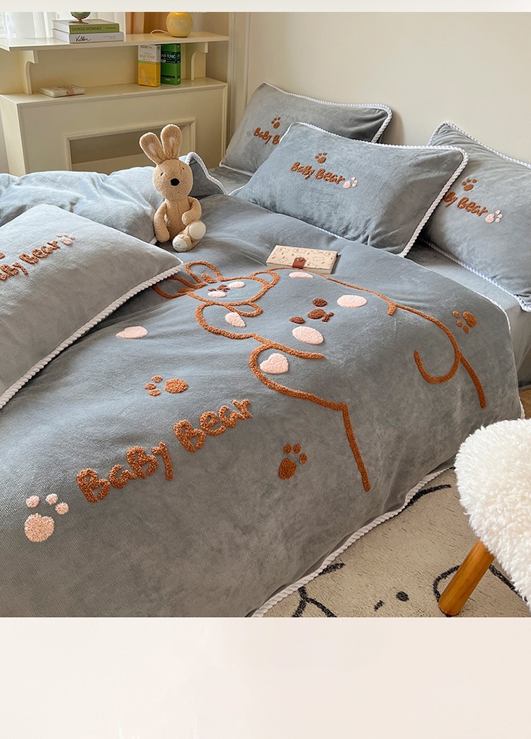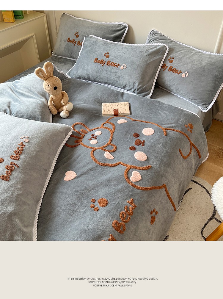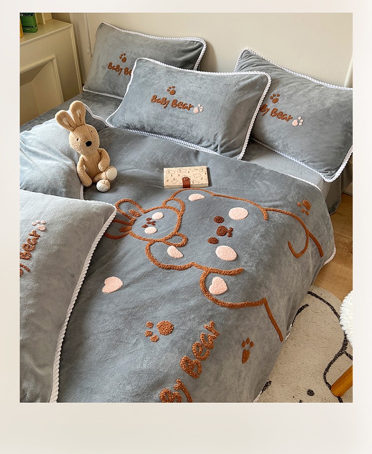 芯贝儿 新款加厚保暖雕花牛奶绒毛巾绣花宝宝法莱绒四件套 熊熊兔-灰