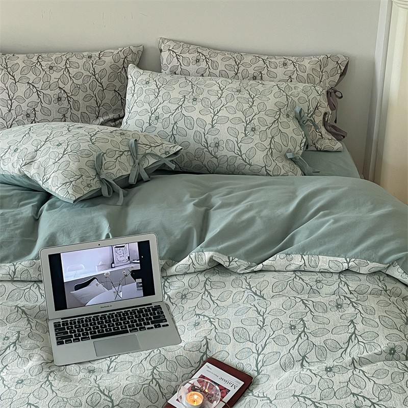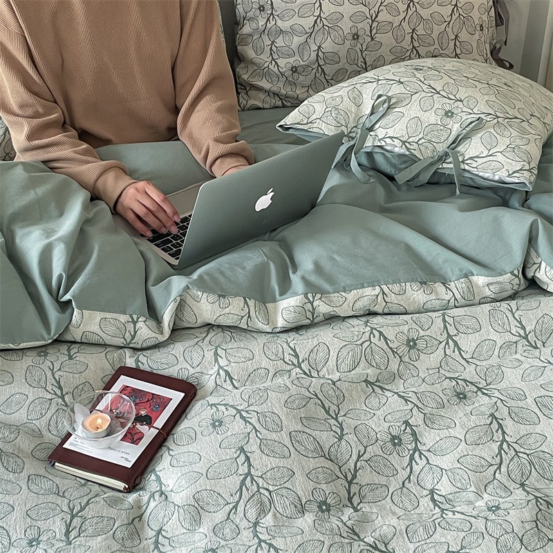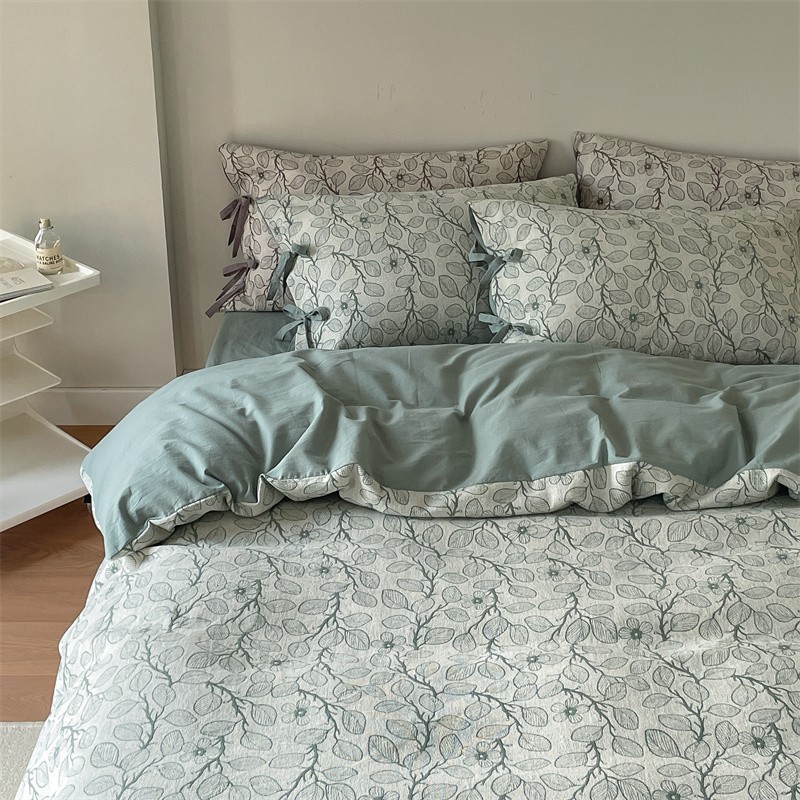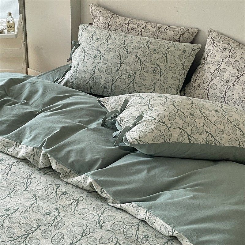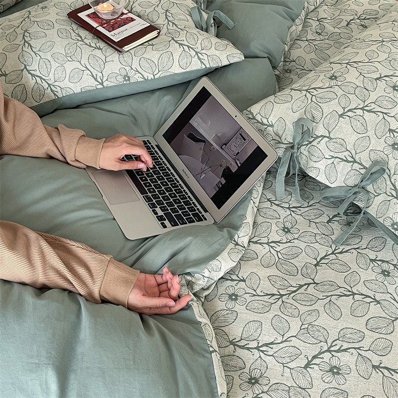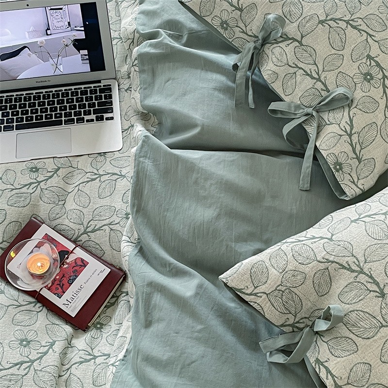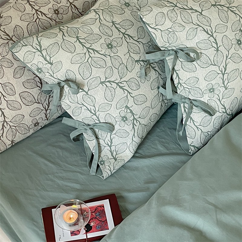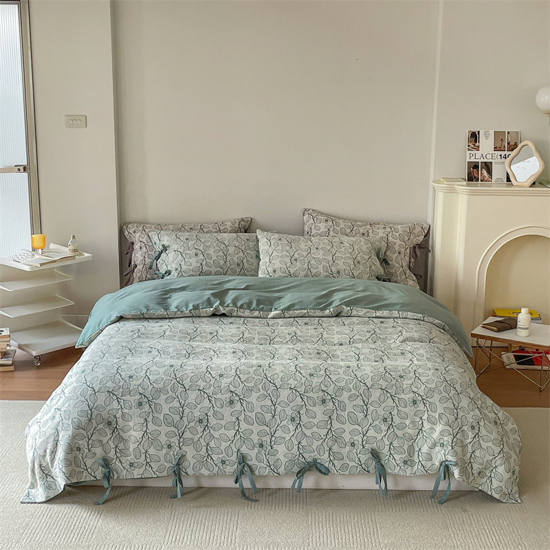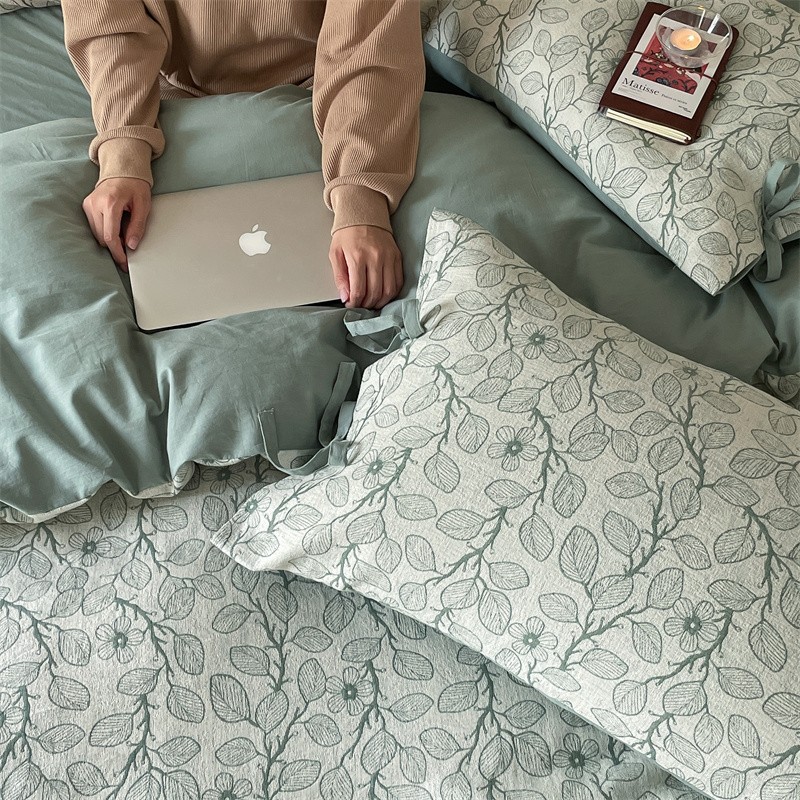 商品名称:华超针织 2022新款色织空气感大提花四件套-绑带款 原野 绑带款